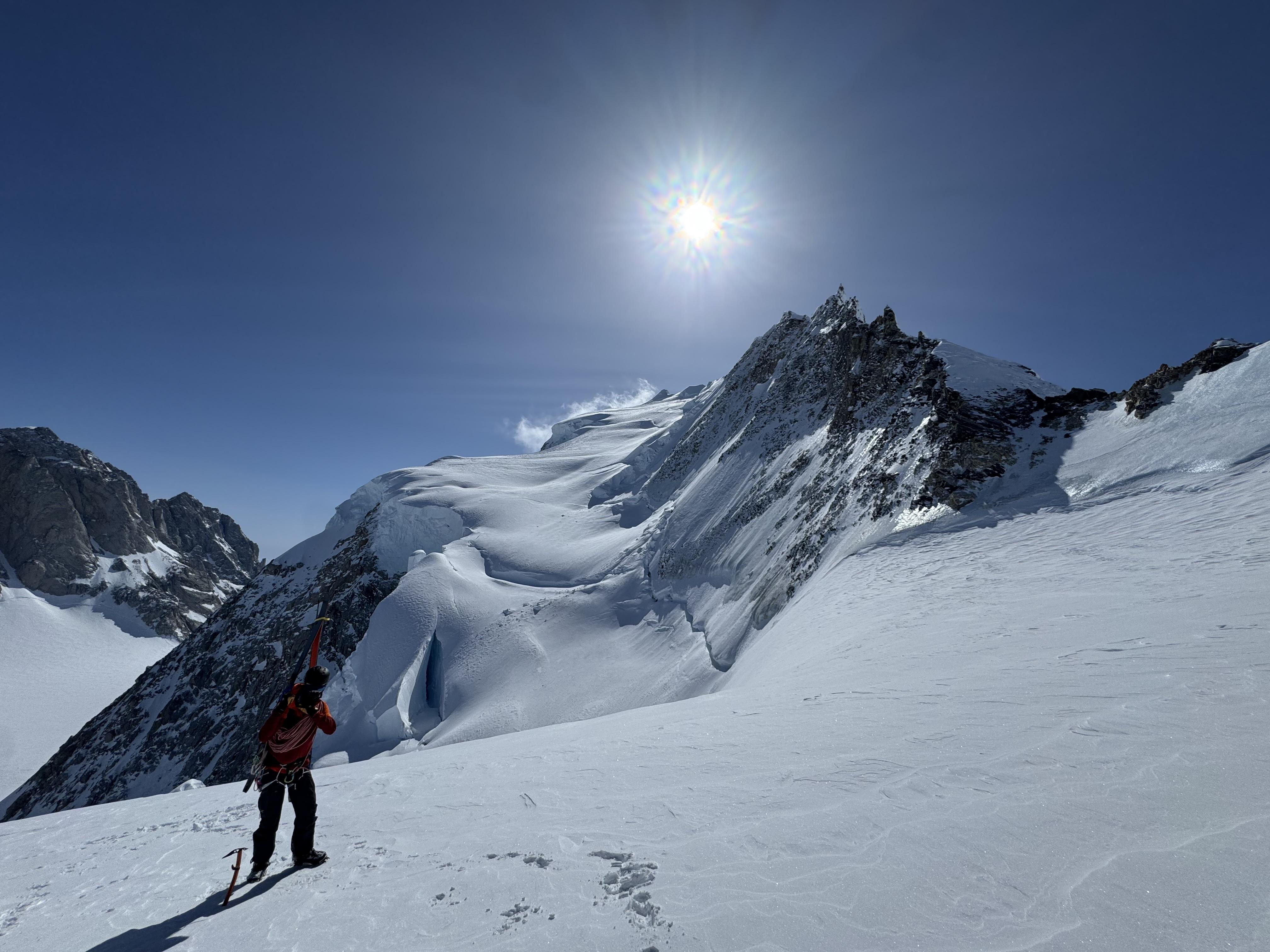 During our trip, we made an attempt on Mount Munday, reaching the summit plateau. We skied several smaller lines around Basecamp (on Jester Peak, Brokenhead peak, and several other unnamed). We climbed the Dais Couloir and gained the Angel Glacier but found the shrund on the Angel to be complex and the required time to manage it for our size group would have too much exposure time to the overhead hazard.