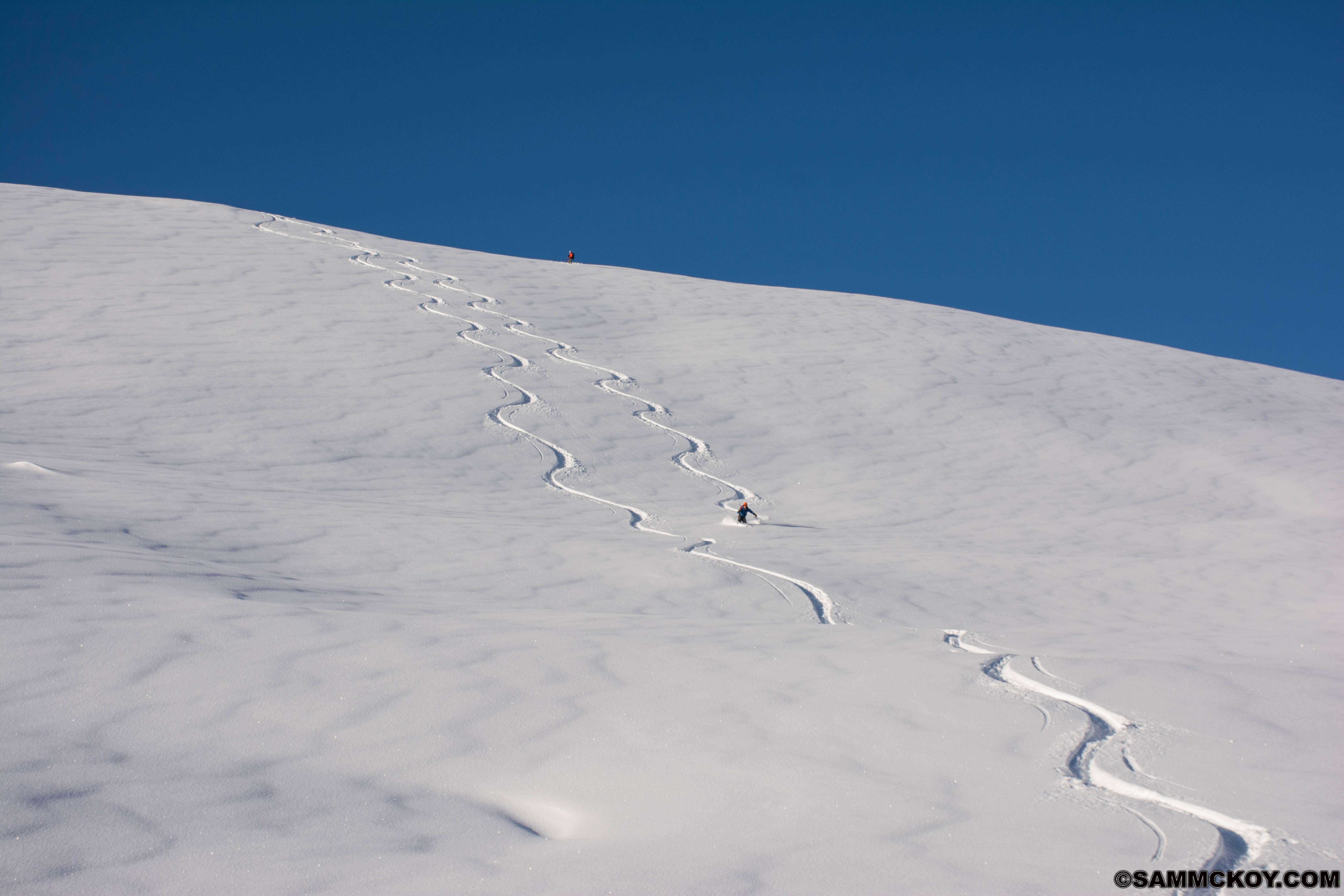 15cm fell in the afternoon of the 29th with another 20cm overnight with wind. The next day blue skies opened up for us and the snow skied excellently.