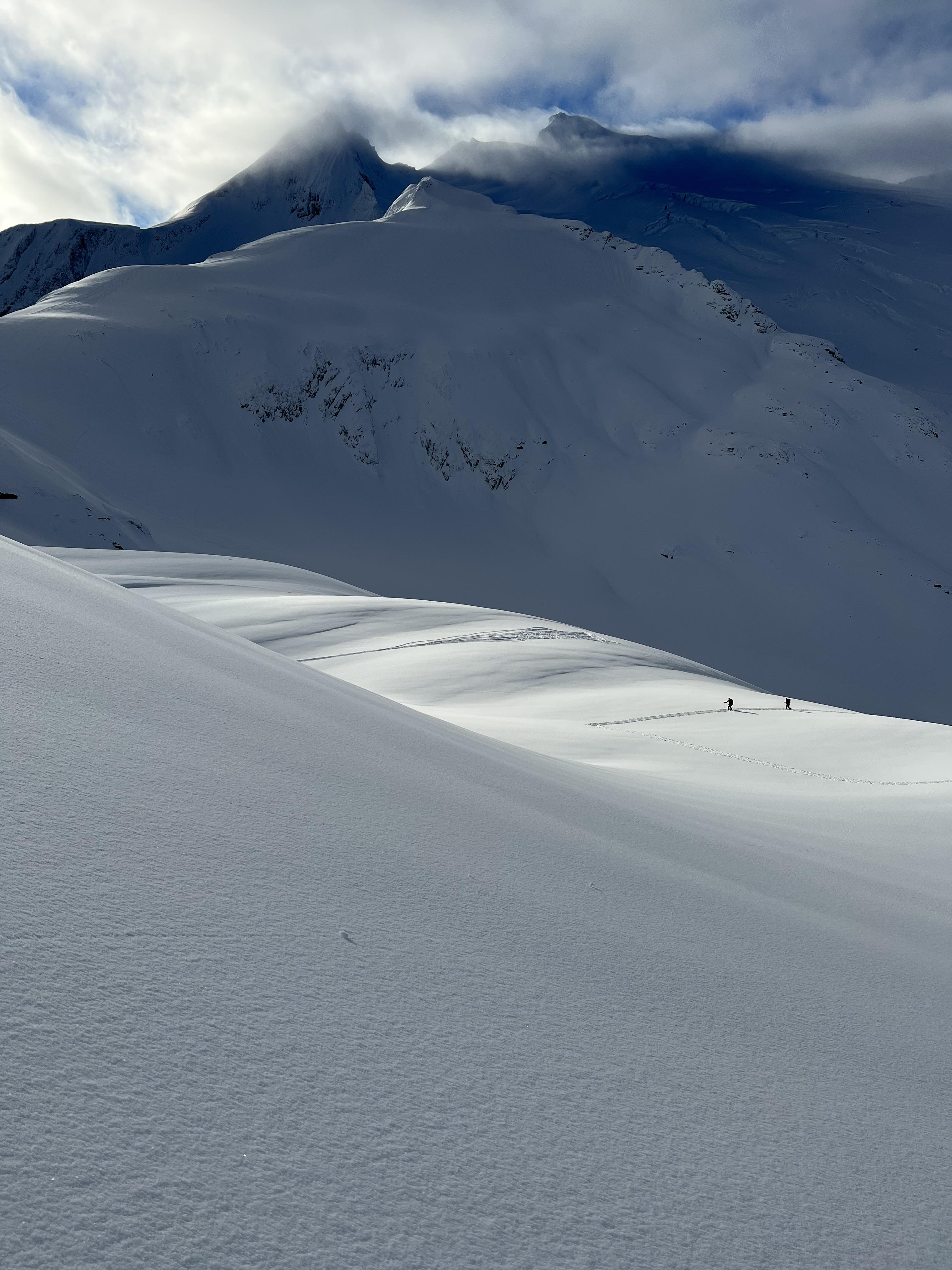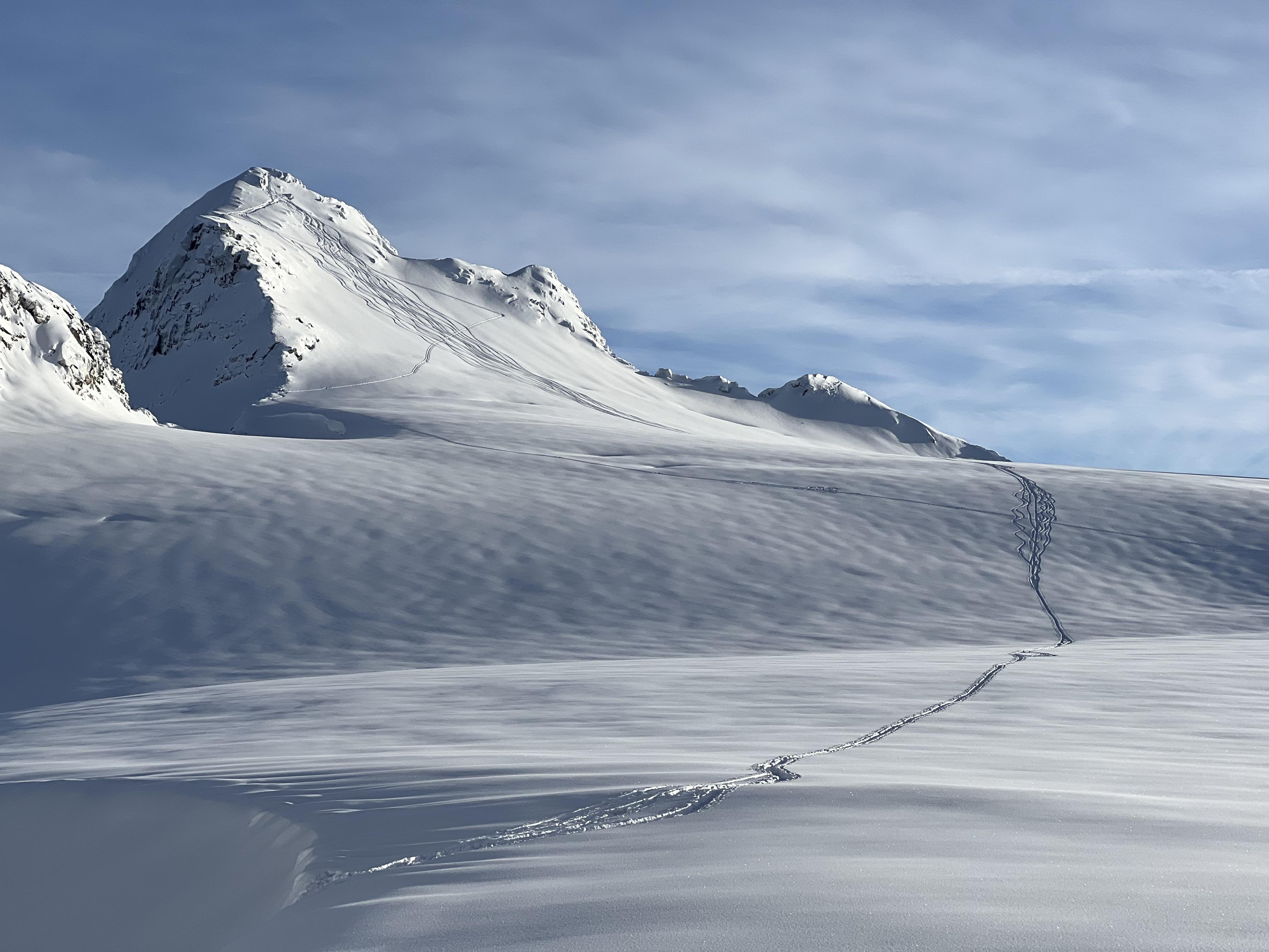 In the alpine on high north facing and lee terrain the snowpack is up to 260cm deep. The snowpack gains resistance progressively and we got little snowpack test results. The glaciers in the alpine are still quite open and there are many sags on most glaciers.