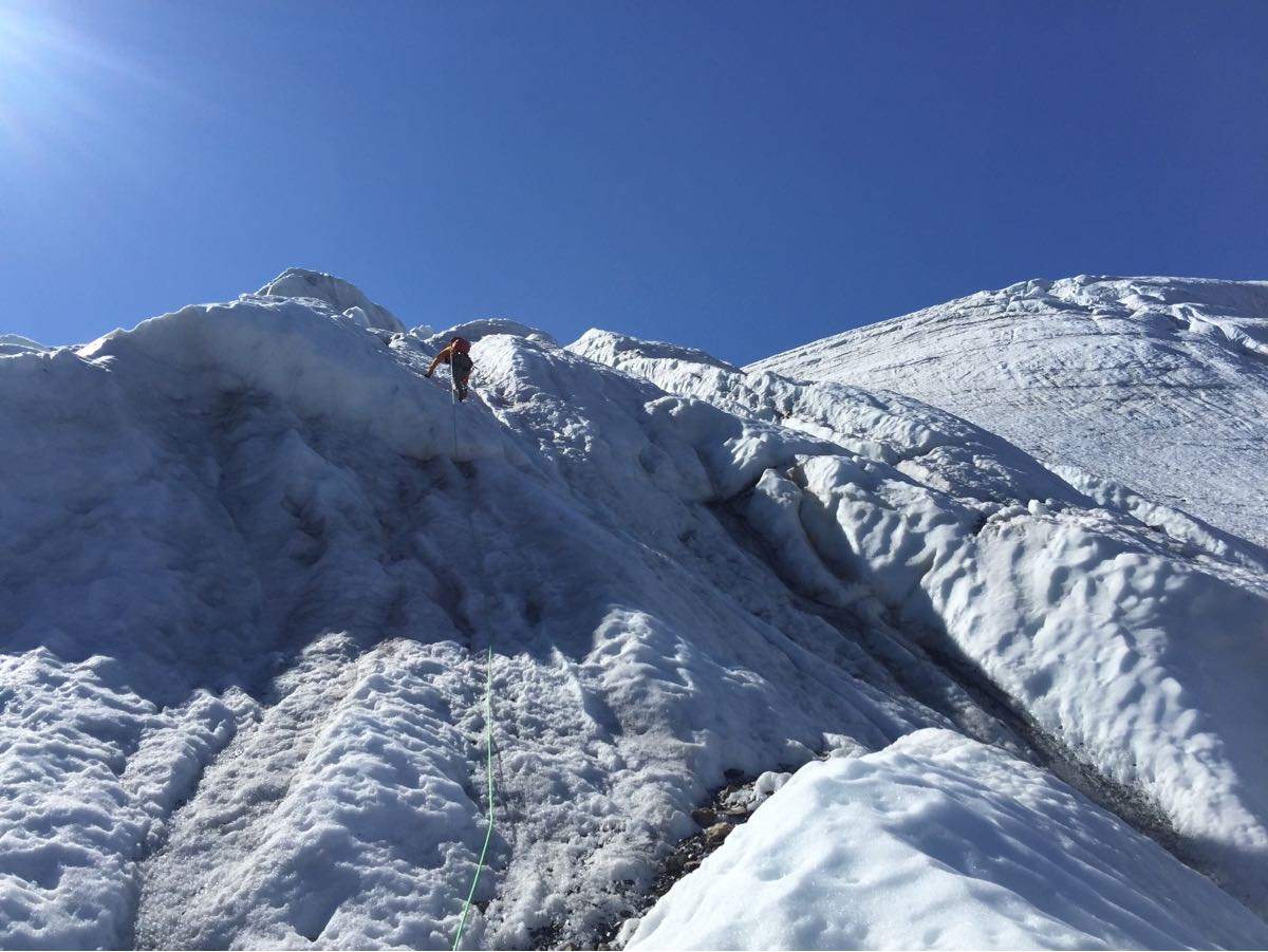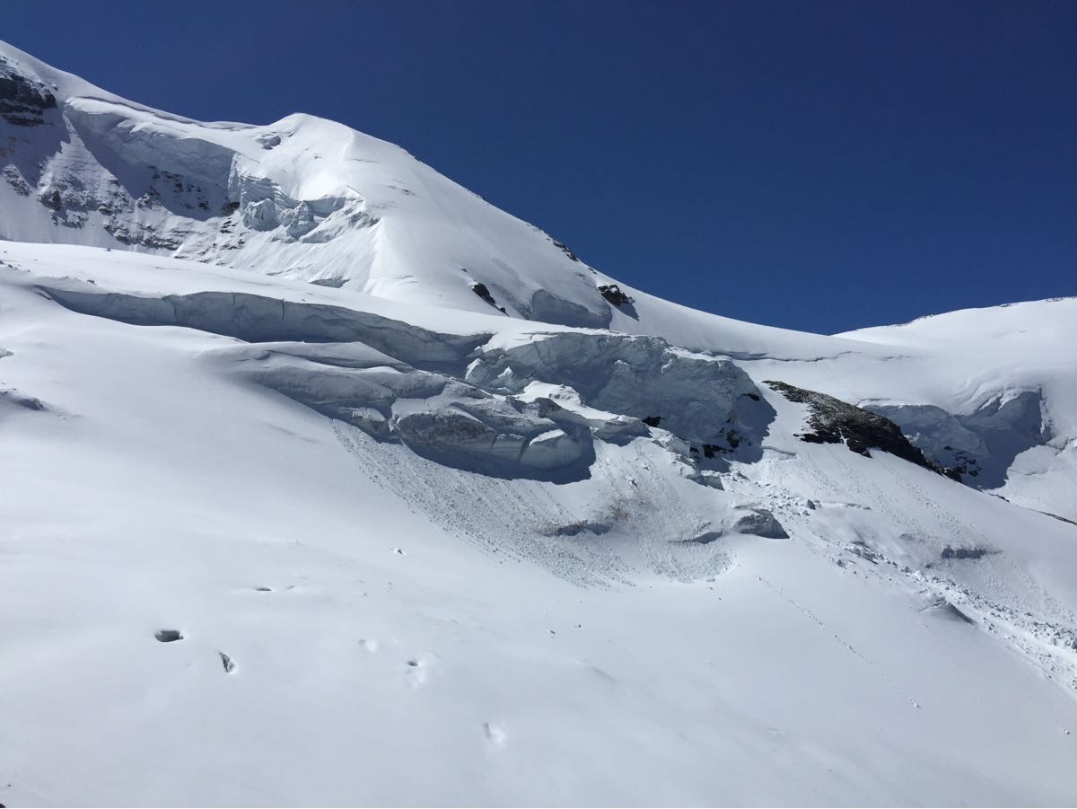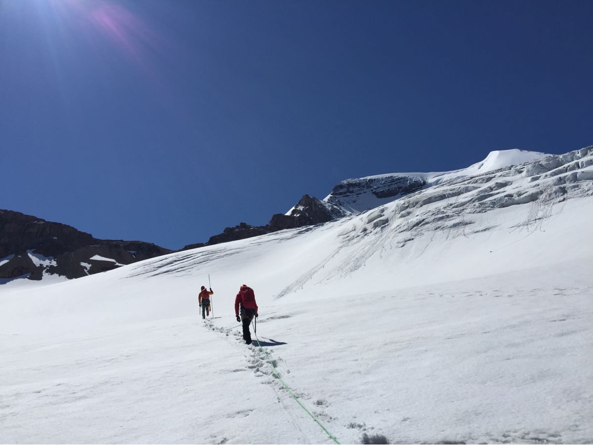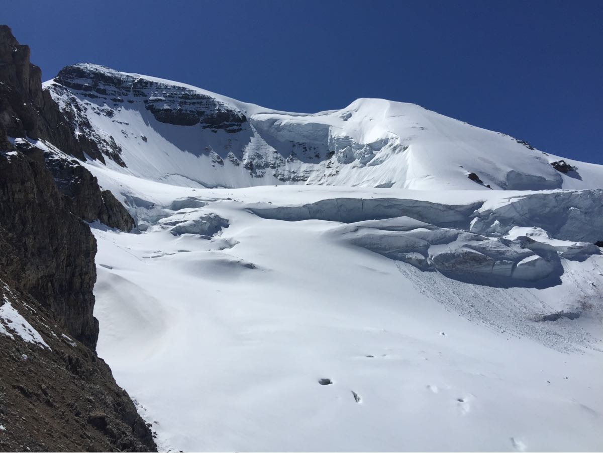 We climbed with a Jasper Park Visitor Safety Team on the North Glacier and part of the NE Ridge of Mount Athabasca yesterday (July 5th). Great travel conditions and weather with sticky ice on the lower part of the glacier and boot top steps in snow up to the Boundary-Athabasca Col. We probed 45cm snow depth on the glacier below the Boundary-Athabasca Col. Watch for thin and weak snow bridges over the crevasses. There was some loose moist snow avalanche activity but limited to size 1, with potential for larger slides with the warm weather. Limit your exposure to avalanches and rockfall, and bring avalanche safety equipment if you travel in avalanche terrain.