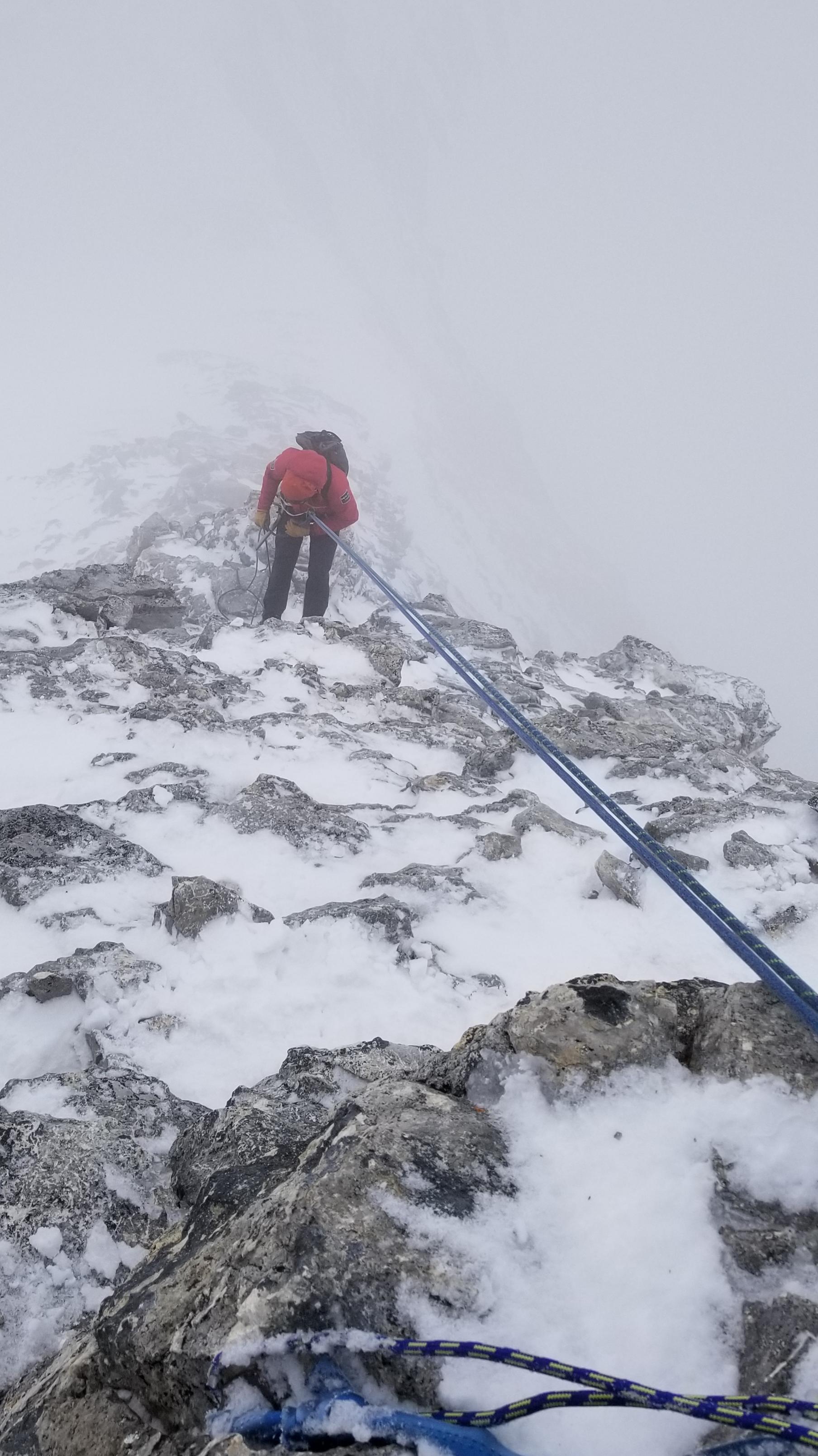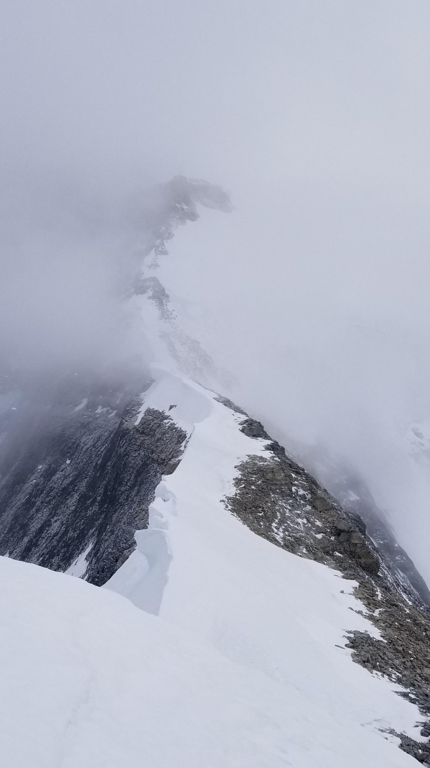 Climbed the North Ridge of North Victoria today. Snow travel was firm, a cool cloudy day kept everything frozen in place, and the rock was snow free where needed.