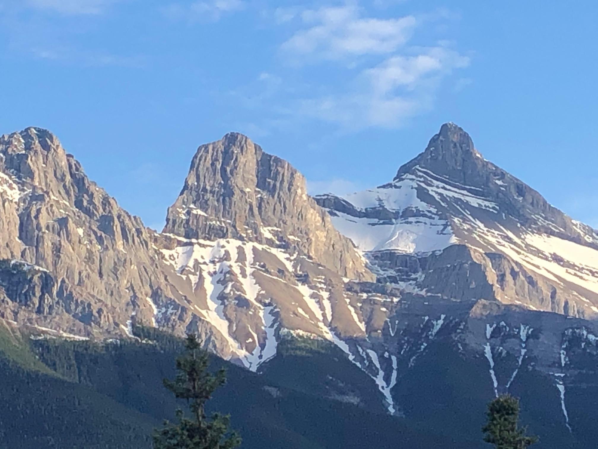 Given the warm temps and excellent rock climbing conditions, one tends to forget how much snow is still left in upper elevations, namely in the start and feeding zones of many large avalanche paths that threaten rock climbs like the new base climbs on Mt. Cascade East Face or the Bourgeau slabs above the Sunshine Parking to name a few. This first heat wave is kicking in early and quite abruptly after higher elevations had just recently received fresh snow. Overnight re-freezes are long gone and water is perculating through the snow in huge amounts until they find a possible bed surface to travel along......attached is a shot from my deck of a healthy slab avalanche on the N aspect of the Big Sister which must have happened today.....