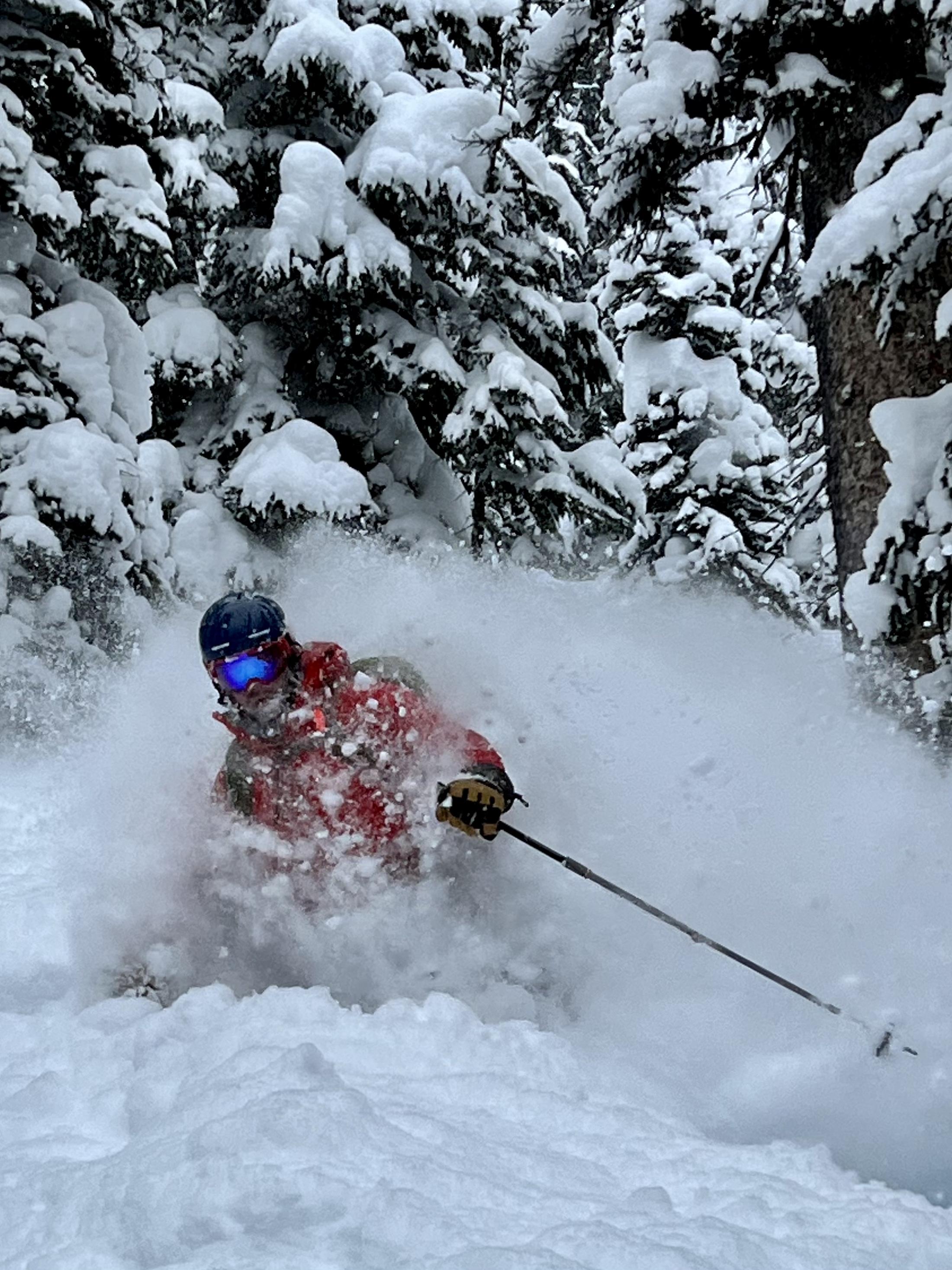 Fantastic conditions today with up to 70 cm of low density snow when trailbreaking up through Ursus Trees.