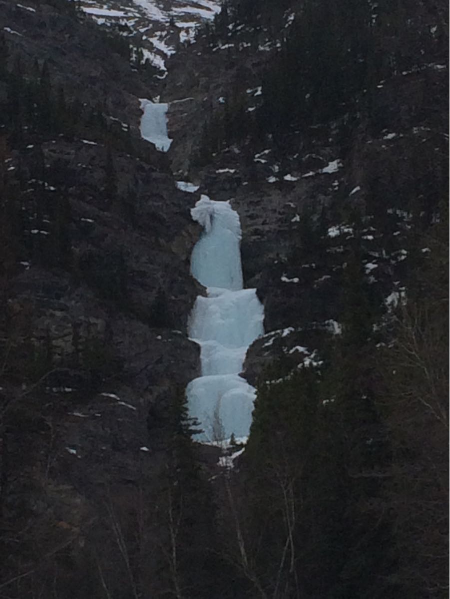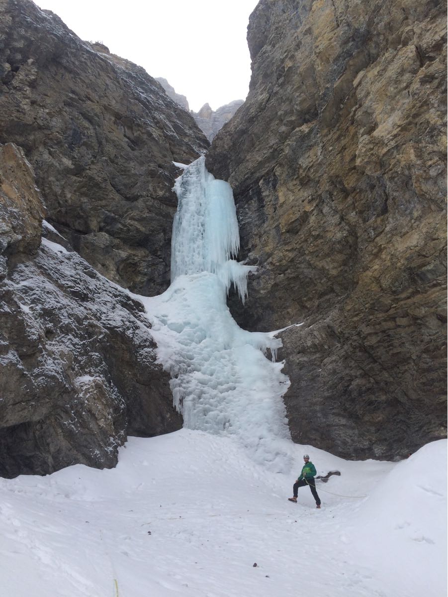 Despite having studded bike tires we stashed our bikes a few hundred meters before the trail head kiosk and put our crampons on to help with icy conditions.None of the pitches had flowing surface water and the ice was generally plastic.