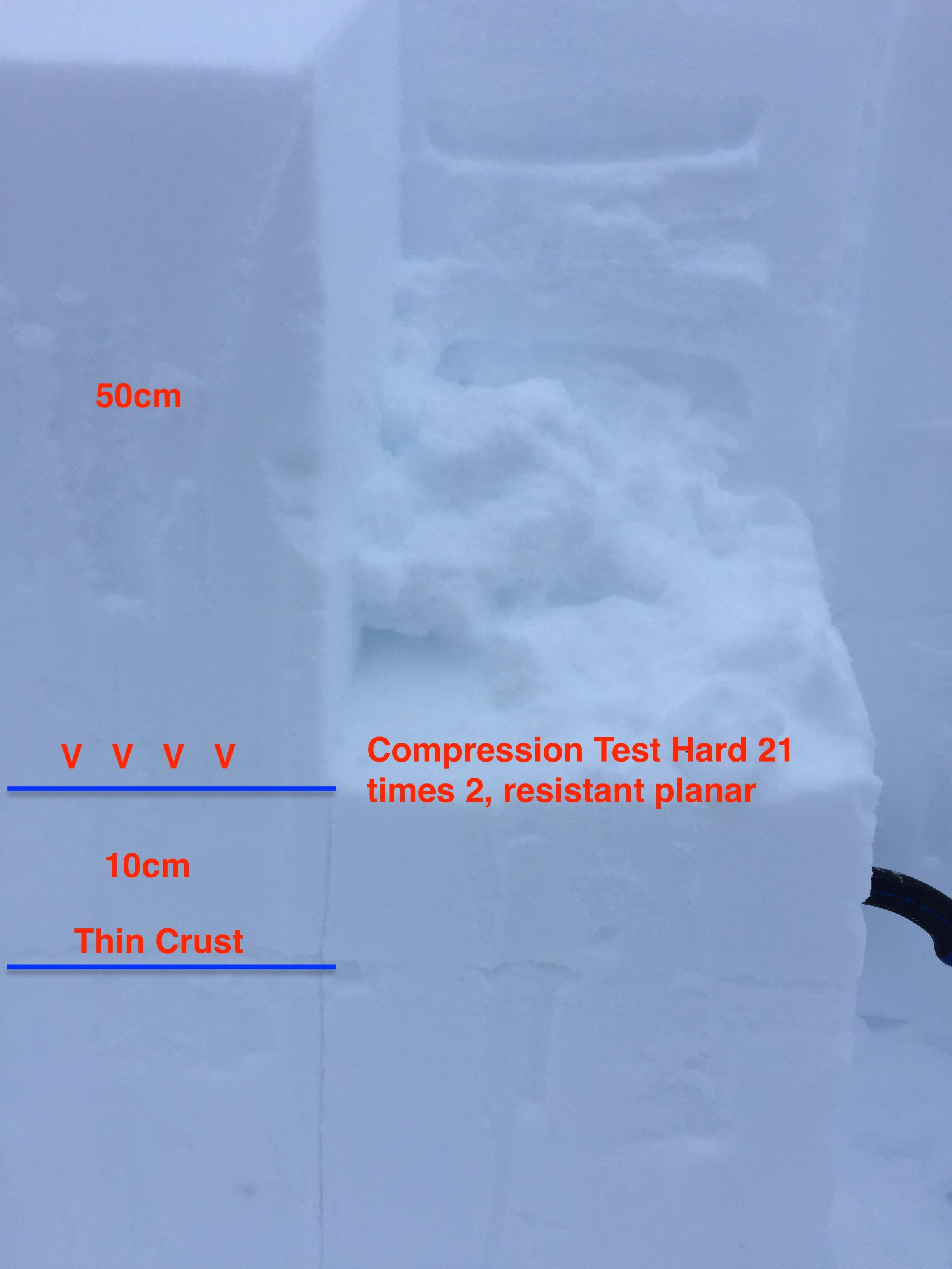 2 size 2 avalanches observed from the last cycle (Jan 3rd) with 20-30 cm newer snow on the debris. Good skiing. Pit showed there may be a SH problem in more sheltered areas.