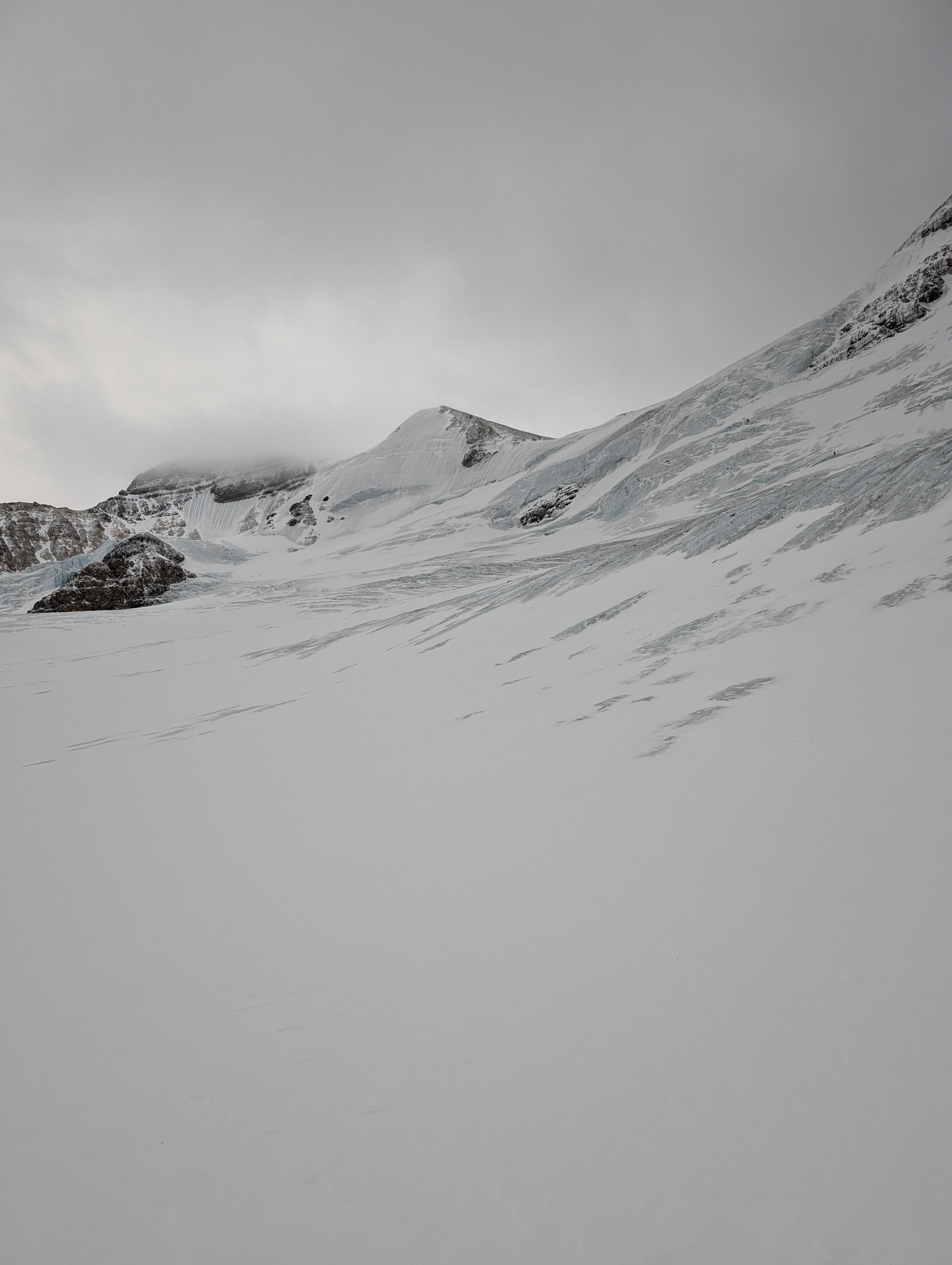 On Sunday the 6th we guided a party of 5 up Athabasca via the ramp route. We followed boot top tracks to the base of the Silverthorn. Across the ramp we probed well bonded consistent density snow. At the end of the traverse we found a pocket of windslab which we avoided by ascending directly to the flats above.
