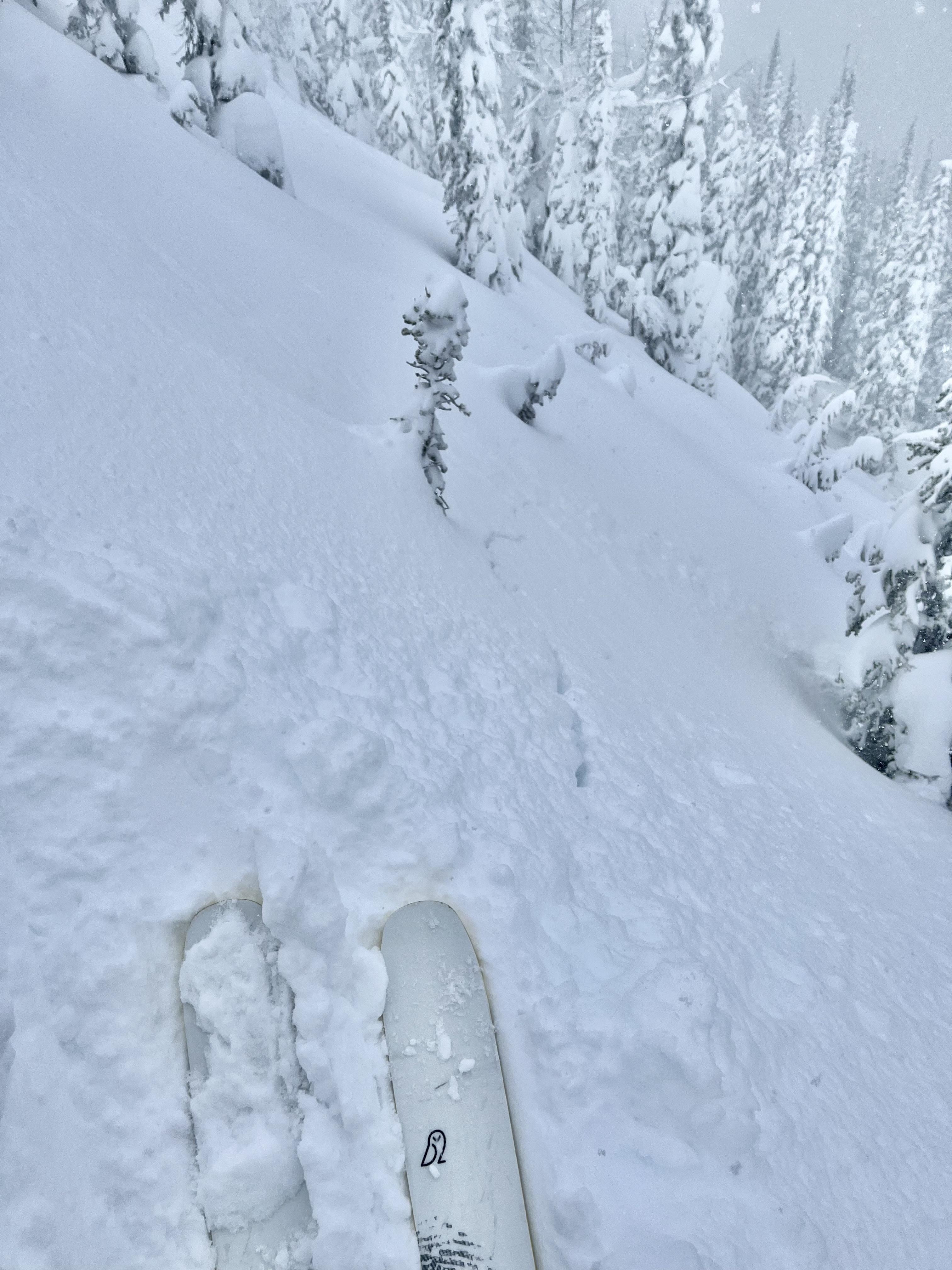 Visibility was poor so we didn’t have any alpine observations today. Great ski quality, but we opted for conservative terrain and tree skiing.