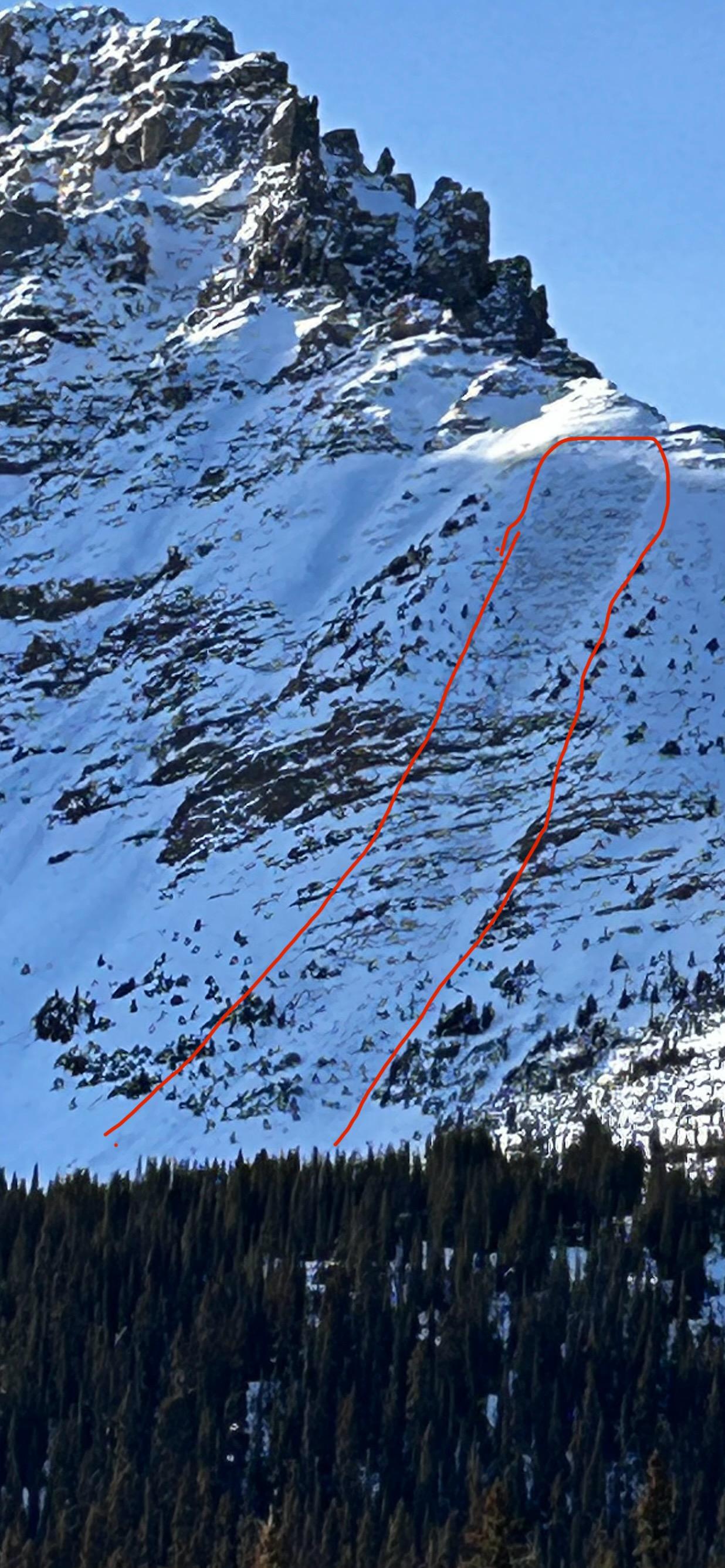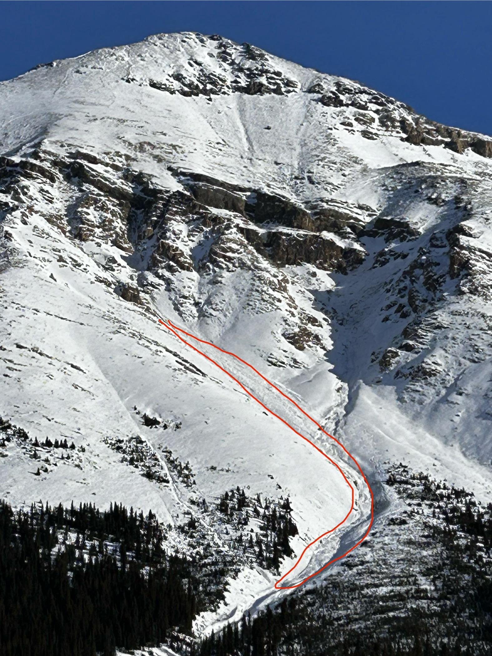 On Sunday Nov 26 we spent the day practicing avalanche rescue in the Bow Summit area. We noticed several avalanches that had run recently, probably Friday or Saturday Nov 25.