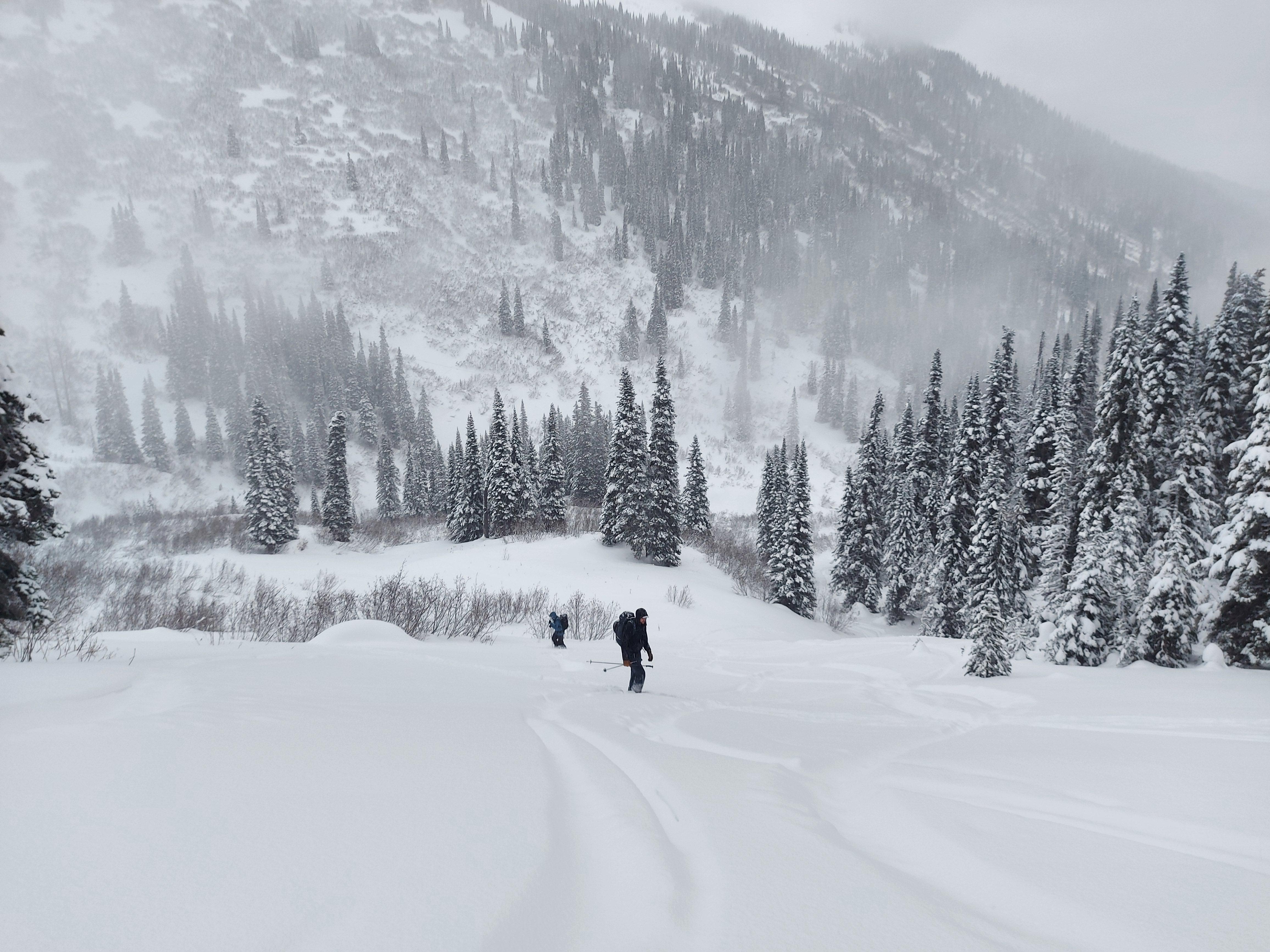 Over the next 3 days we received 75cm of snow at the cabin. On the night of November 26th we had strong southerly winds at treeline before shifting to moderate northerly winds on the 27th through the day as temps took a drop. We woke up to -18C this morning at the cabin elevation (1550m).