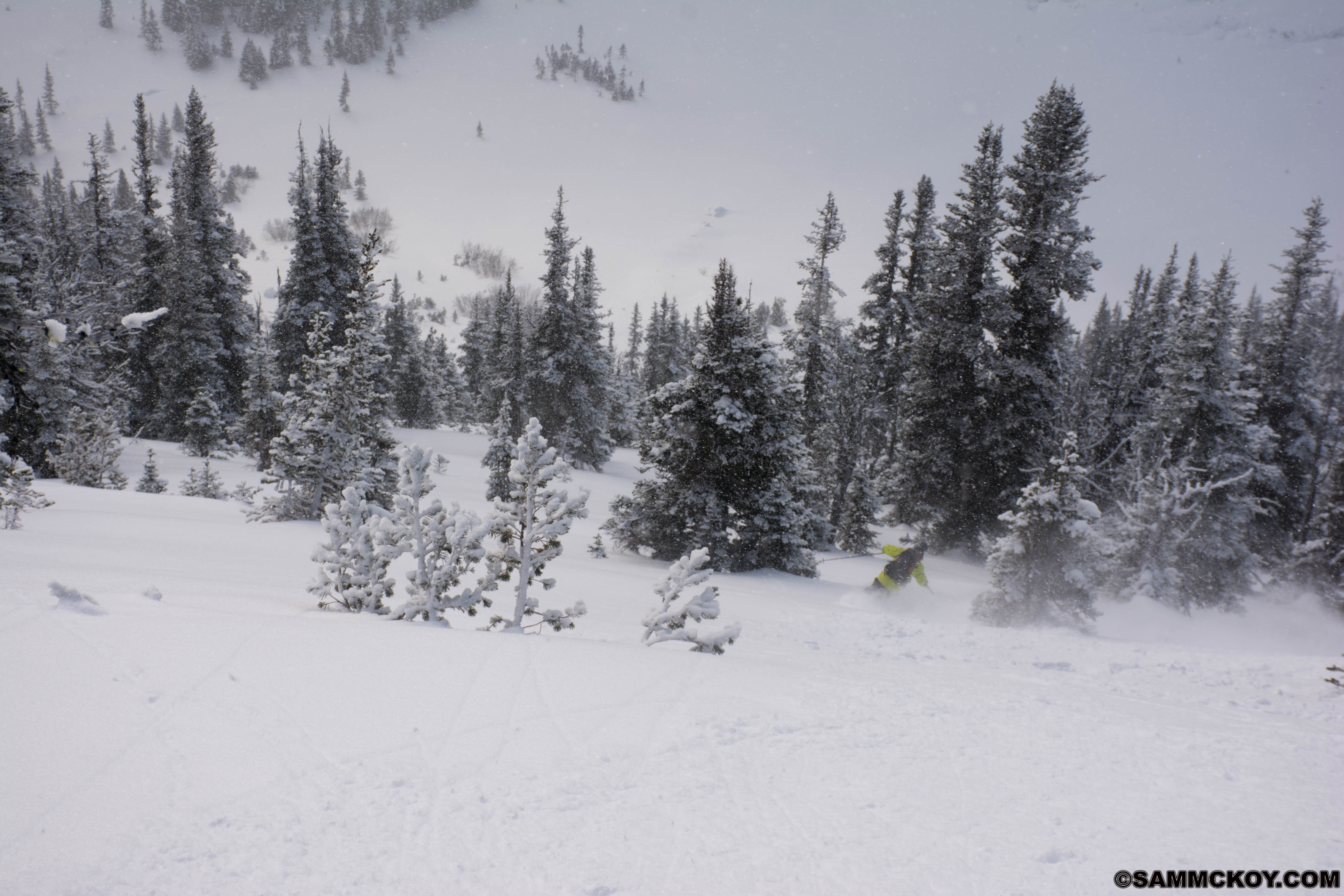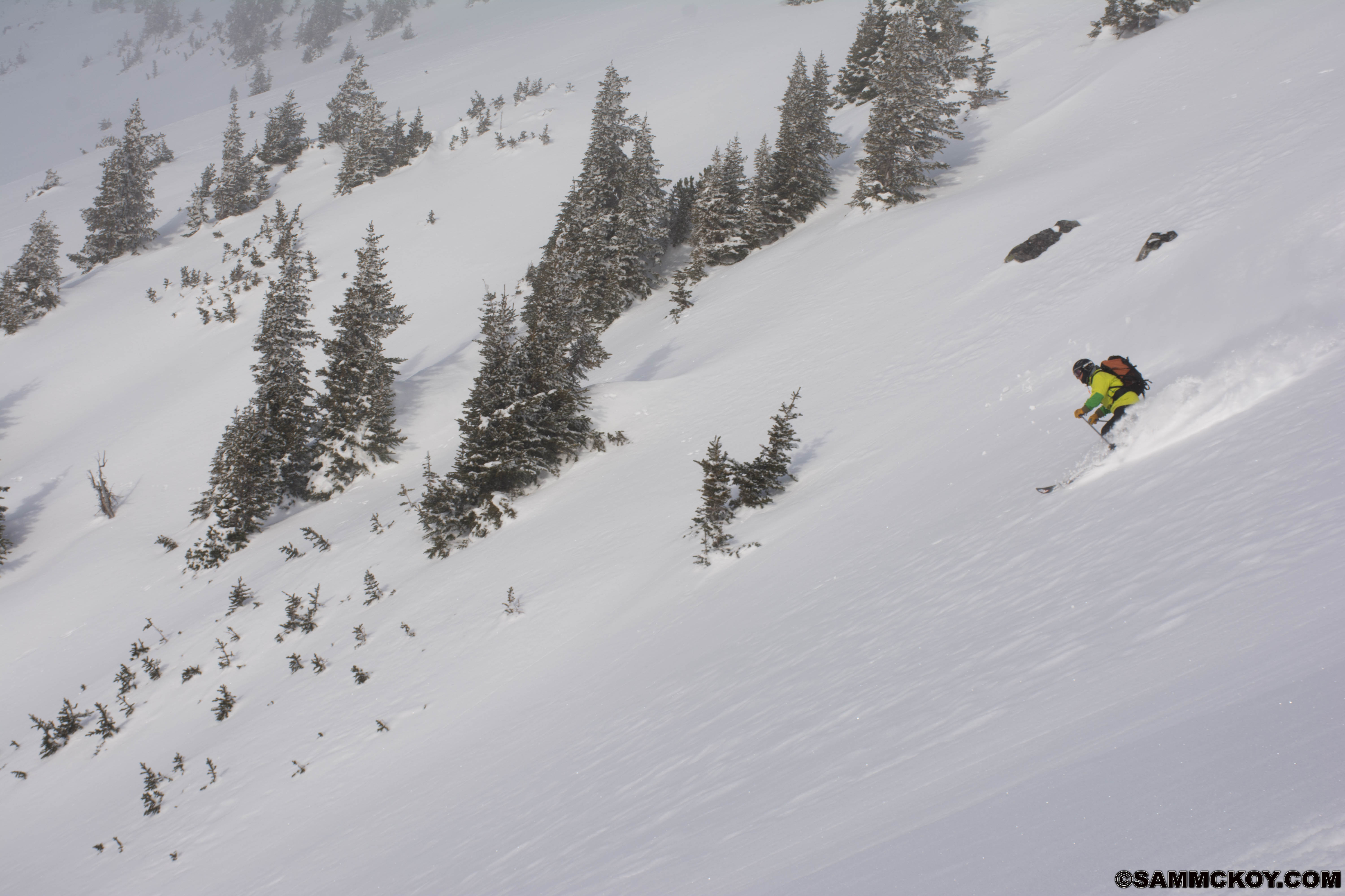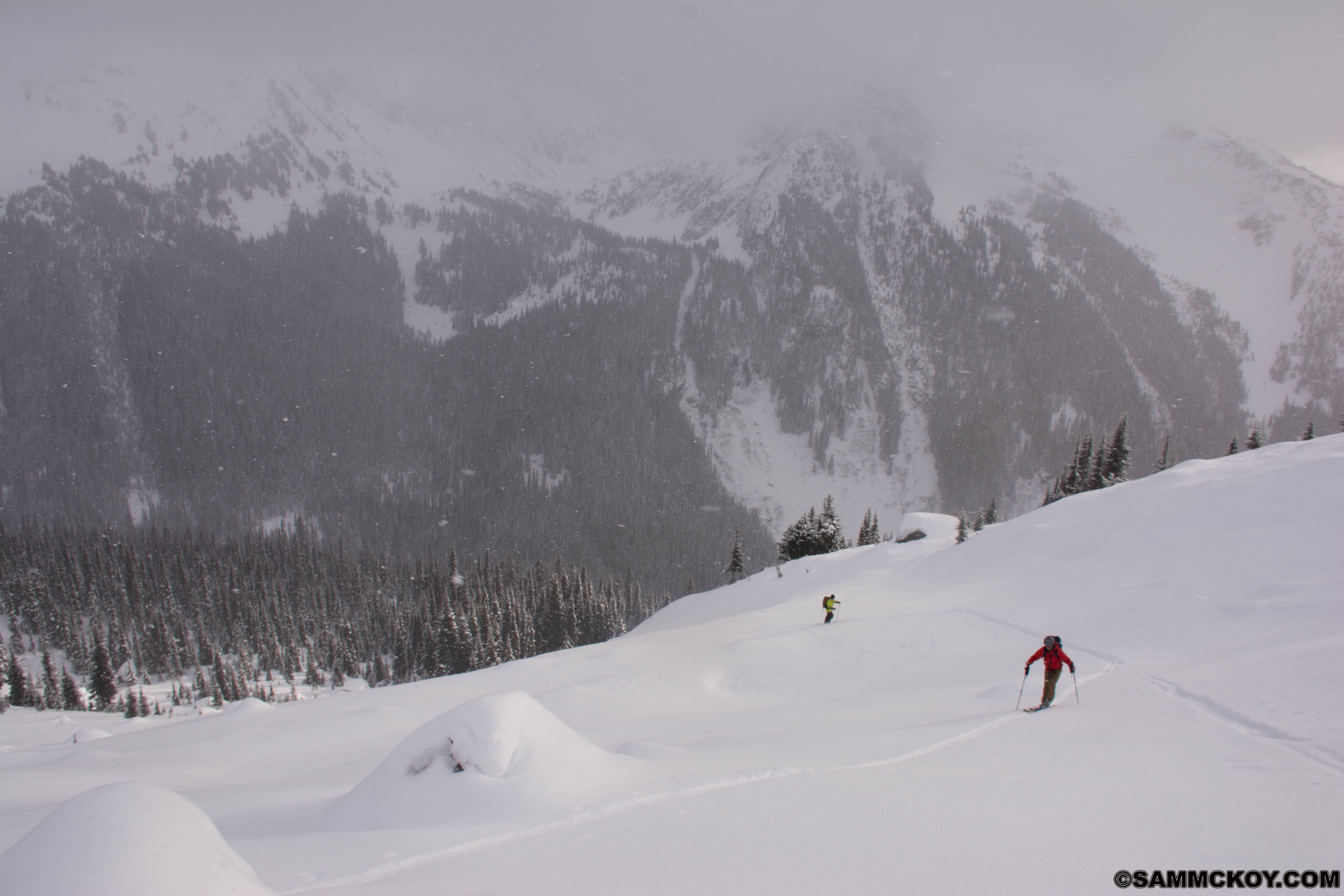 A very light 5-10cm of new snow was falling on the approach but cleared to blue skies by the PM. Little to no wind in the alpine.
