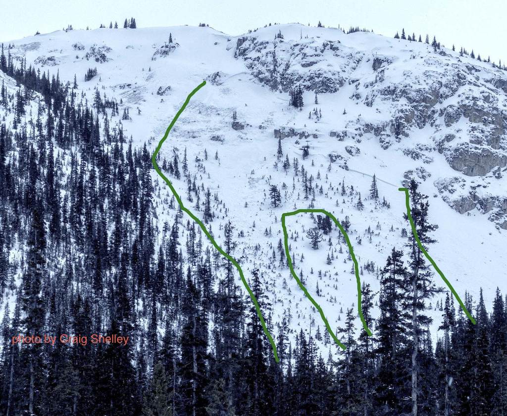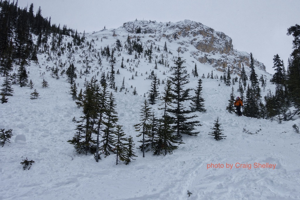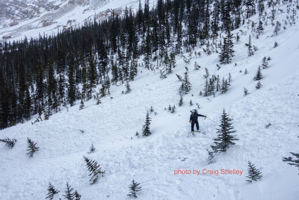 On the way out from the Bow Hut we encountered a recent Size 2.5 avalanche that hit the normal approach trail. We estimate that it occurred in the last 12 to 24 hours (Sunday night / Monday morning).