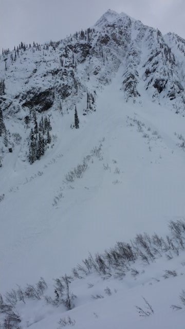 In both drainages there were several old avalanche deposits from during the height of the storm up to size 2.5, though some of the usual performers in Connaught Ck. did not run during the storm (notably Frequent Flyer and STS aka Cheops 4) - there were a couple of loose avalanche in steep solar terrain that looked more recent, but other than that there was no recent activity observed.