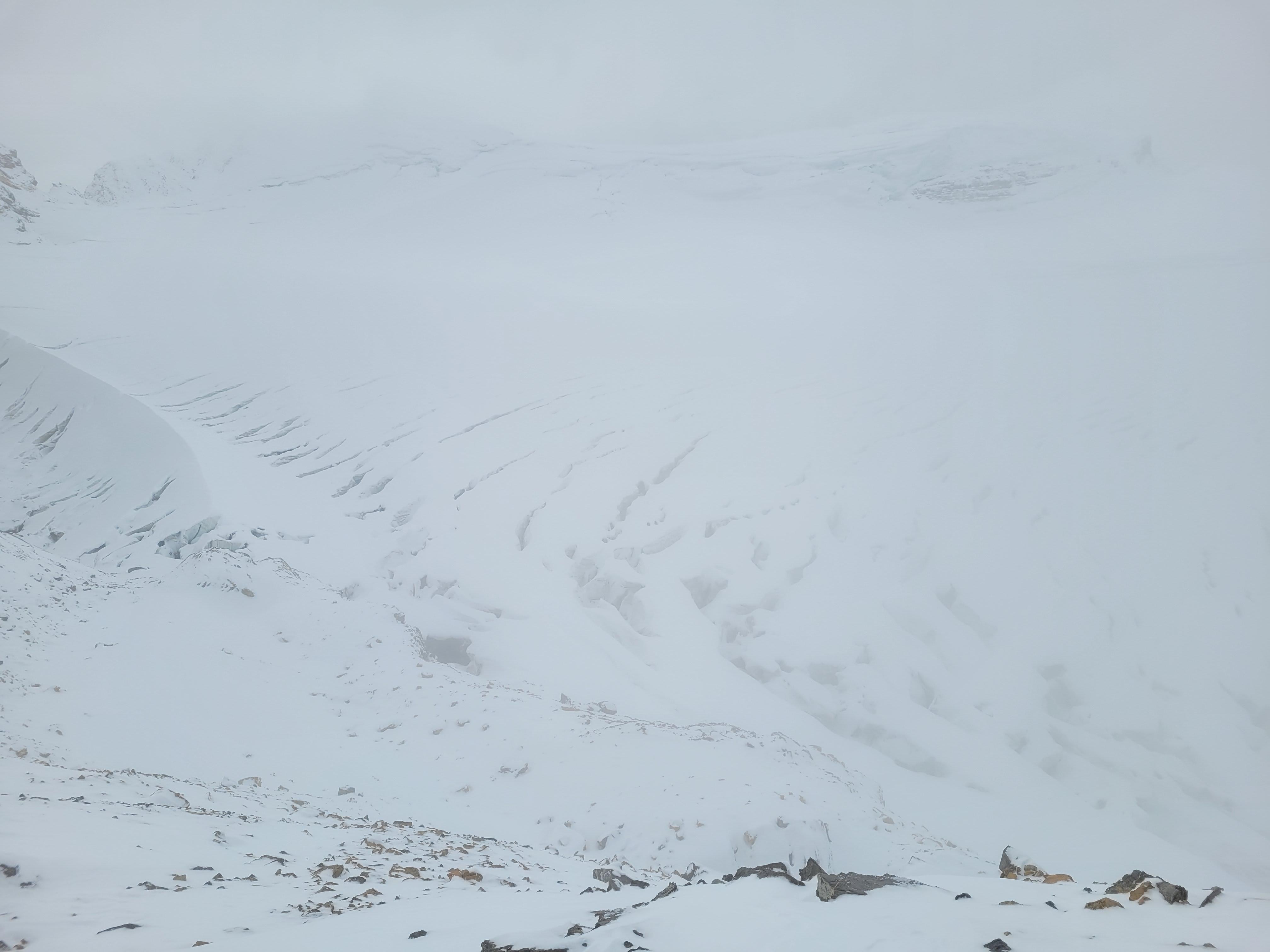 Conditions are challenging right now, and the ski in and out from Bow Hut was marginal at best. On the glaciers, average snow coverage was 55 cm. Crevasses were difficult to see due to coverage from hard wind slabs, but bridging was dubious to nonexistent.