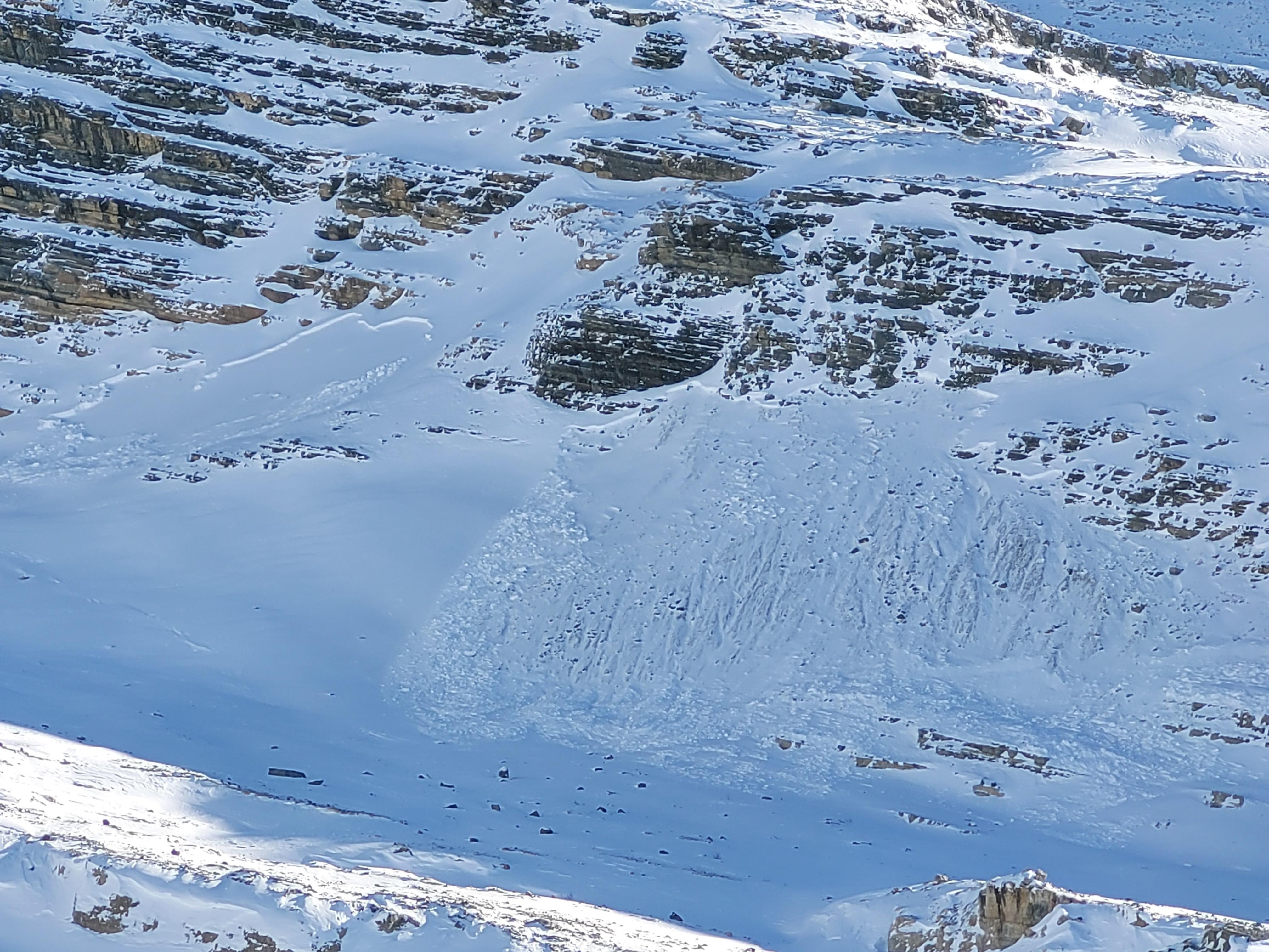 On Nov 15-16 there was a natural avalanche cycle to size 2.5. Visibility was poor during that time, but on Nov 17 we observed crowns on Mt Baker, Mt Habel, Trapper Peak, Peyto Peak and the Bow Hut headwall. These avalanches were failing down approximately 40 cm on the storm snow interface, or on the ground.