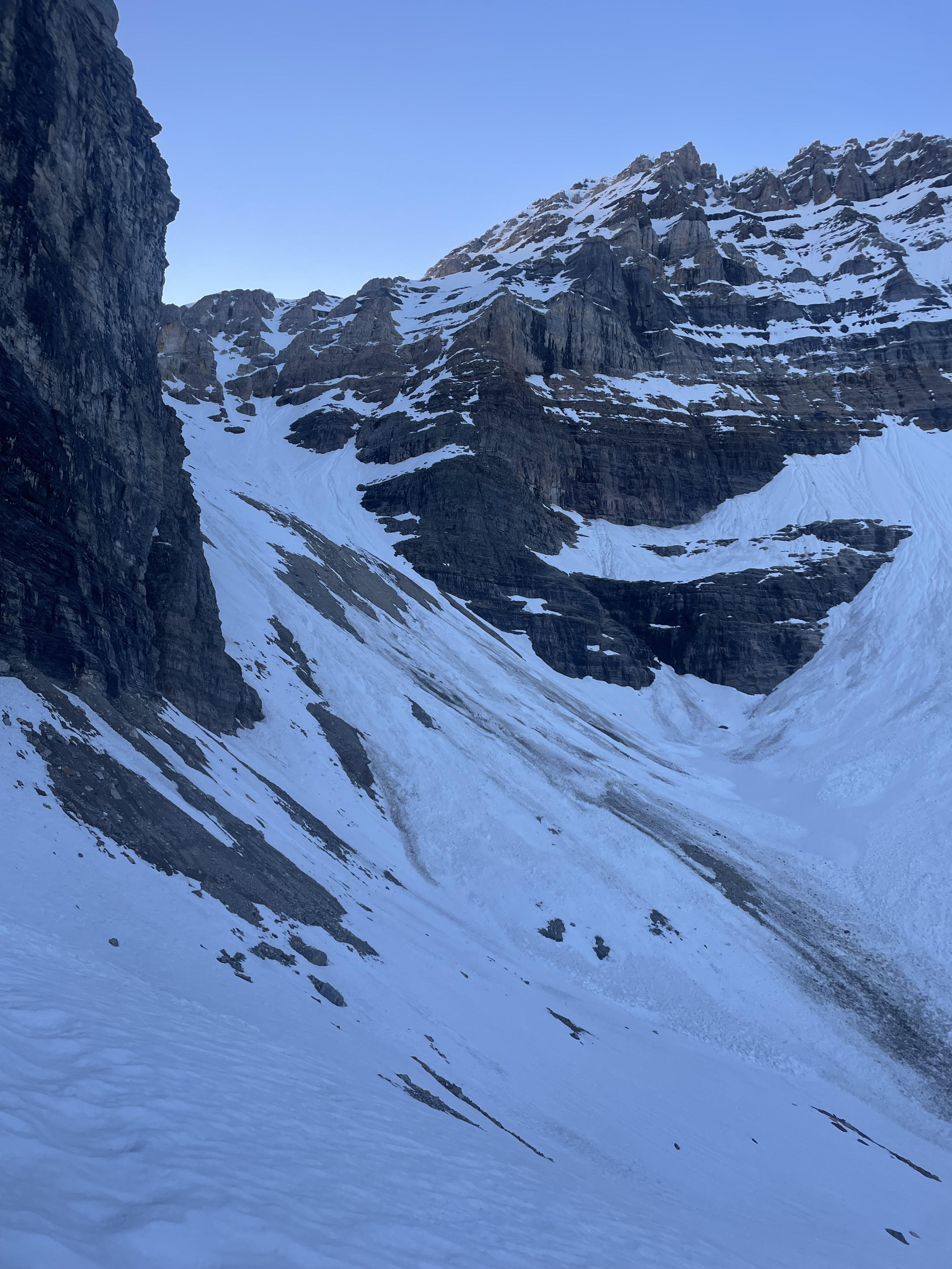 Tried to climb Lefroy this morning. Best coverage in many years and a cool, clear night. Not exactly sure what factors led to this but we had good conditions to about 1/2 way up the Abbott Pass slope then it was just plain terrible to the Pass. From shallow boot pen to an average 2cm crust and moist granular snow underneath to the ground in most places. We plowed a mighty trench to the pass but could not justify going any further. It was going to suck and would probably turn to loose wet avalanche conditions shortly after that crust melted.