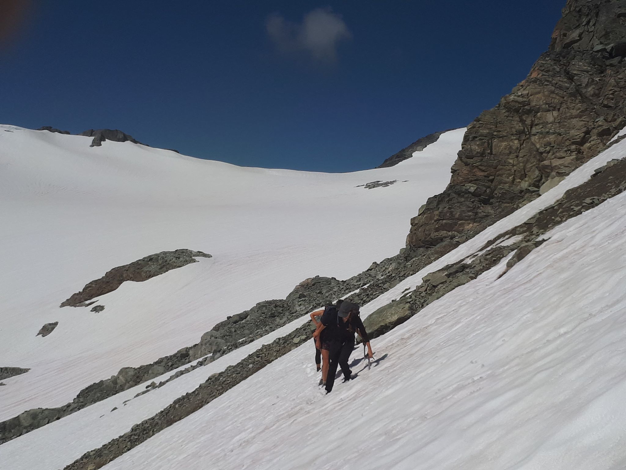 A few snow patches were to be crossed which makes carrying an ice axe advisable. Low probability, considering consequences.
