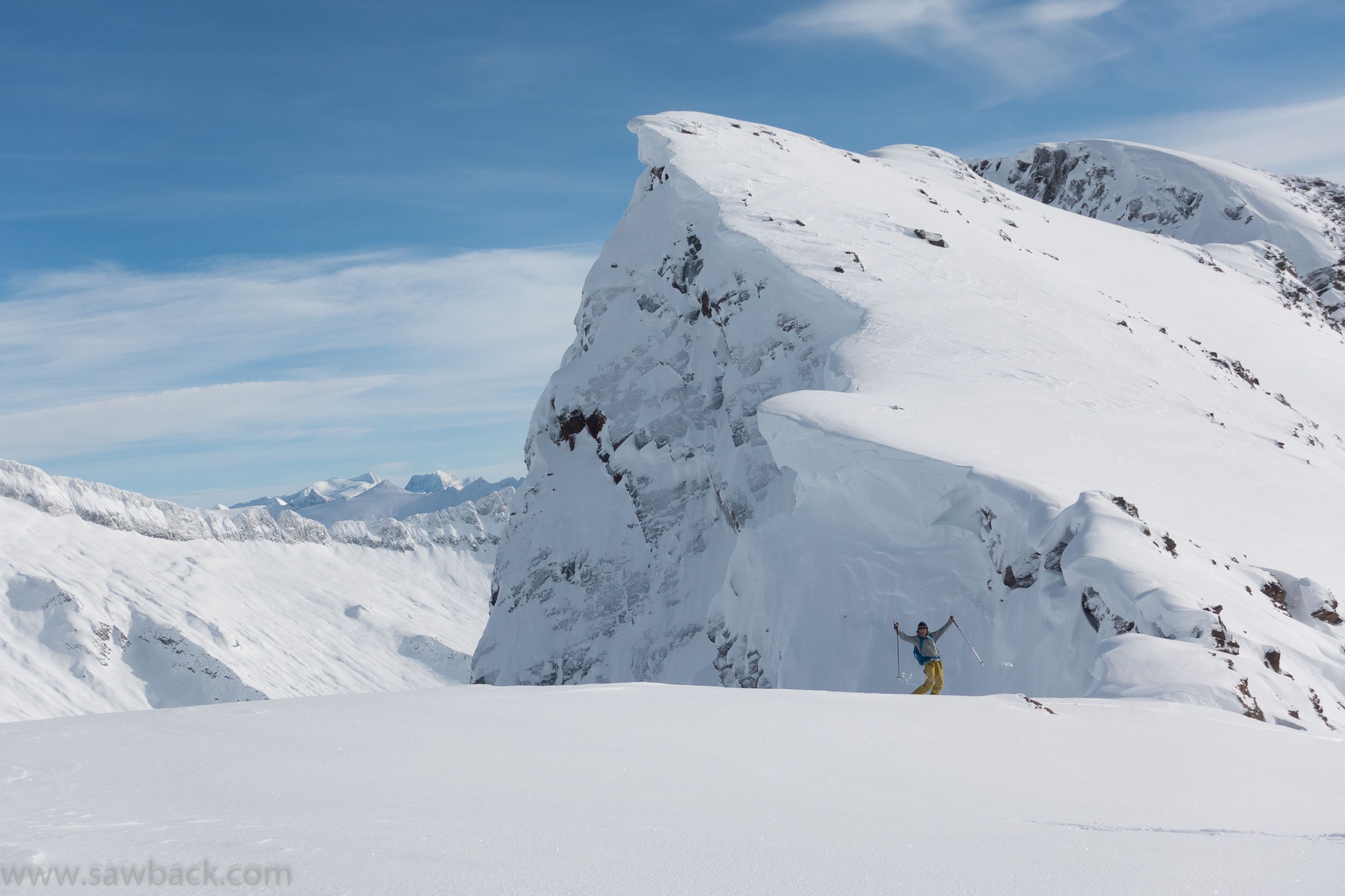 Friday saw the start of the clear weather, and the windslabs appeared to have bonded in the storm interfaces, with no results to aggressive ski cutting on windloaded convex slopes in the alpine. We were still giving them respect, keeping to smaller terrain, but confidence was growing. When we flew out on Saturday it was with some regret -- as great as the week was for ski quality, it would have been pretty awesome to spend the week up there with such an amazing snowpack, low hazard, and clear weather.