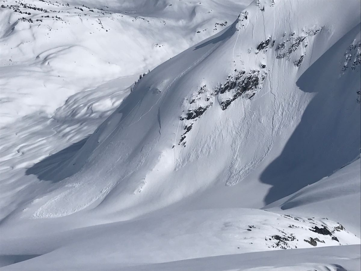 As more operations shut down and less folks are skiing these days, it’s harder to find information so I thought I’d put this out there as the skiing is really good this week. Since Saturday we’ve seen numerous pulses deliver 60cm of new snow with prevailing westerly winds and generally warm temps. We’ve now witnessed a couple avalanche cycles as well. In some places this soft WSL is up to a meter thick and we have given healthy respect to steep, windloaded features. Last night we picked up 20cm of cold smoke due to cool overnight temps that carried through most of today with -7 at 2500m mid-morning. We skied some NE-E aspects in the alpine to ~2000m and were able to remote trigger numerous sz. 1 soft slabs failing within the most recent storm snow. On all solar aspects in the alpine where a breakable sun crust developed April 14, the new snow is bonding well and skis really well again. At lower elevations (ie below 1700m), the April 14 crust carries well on all aspects. The skiing was terrible only a few days ago but the cool temps and April cold smoke has smiles all around up here. Hope this helps to encourage folks to keep skiing this spring, it’s awesome right now!