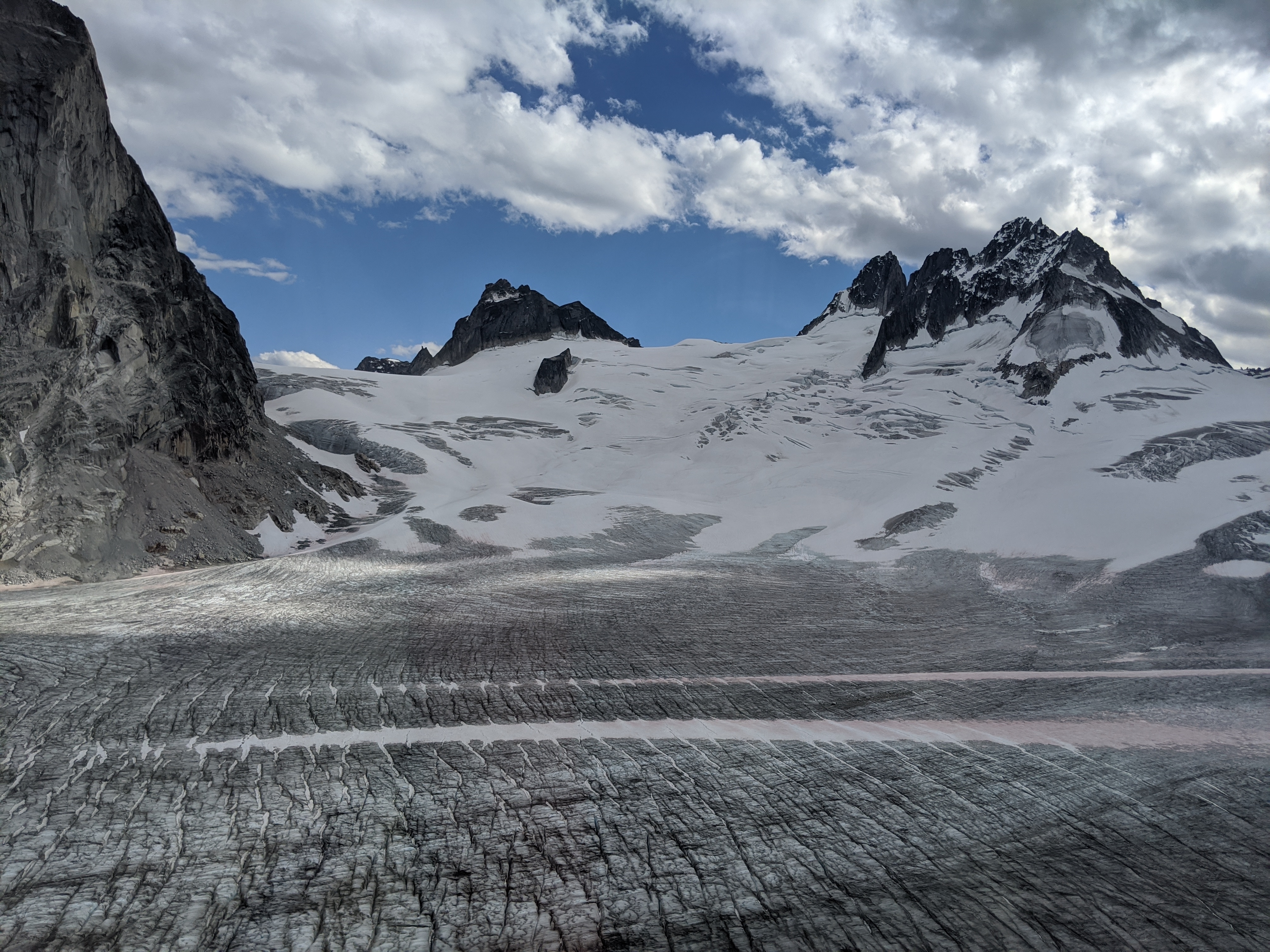 The average snowpack depth at treeline in the area was about 350cm. Test profiles in the area over the period showed consistent easy shears in the storm snow interfaces and hard resistant shears down 70cm. With the rising freezing level, today we notice more reactivity on this layer below treeline. This storm slab will likely continue to become more reactive with current forecast. Of note, significant cornice growth was observed this week. There was an ongoing storm snow avalanche cycle during our time there. The new soft snow was cracking and sloughing easily on itself to size 2 on most unsupported treeline and below treeline terrain steeper than 35 deg. Skiing similar terrain easily produced chocking face shots along with fast sloughing. As the storm lost some intensity and the temperatures started rising, sloughing became more manageable. Today the main concern was the developing storm slab, we observed shooting crack and whumpfs in select areas below treeline. While skiing out, we saw several larger avalanche debris running nearly full path out of some of the steeper paths along the Kokanee road.