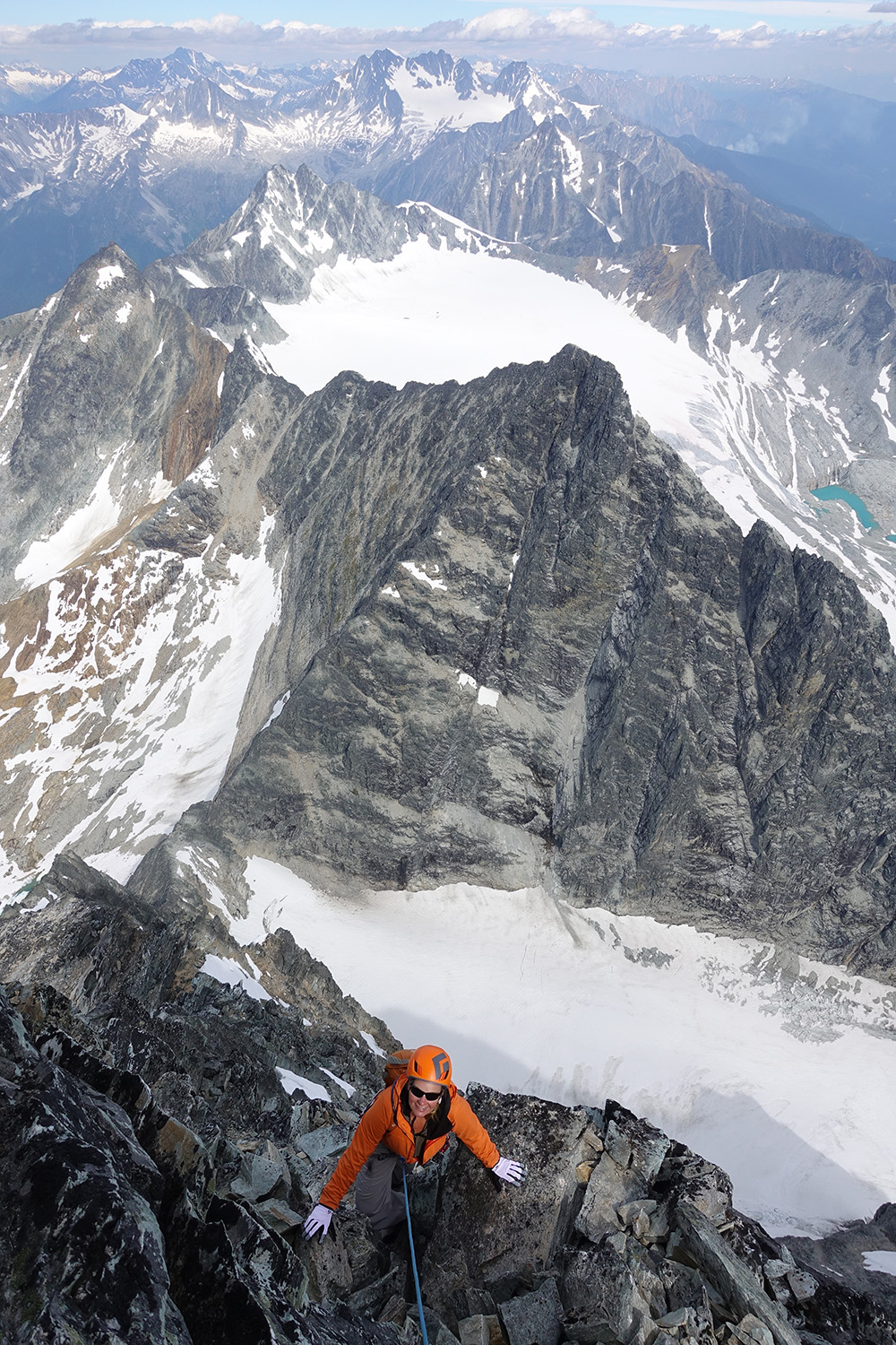 I guided an ascent of the Northwest ridge of Sir Donald yesterday July 30. We descended via the West face bypass and rappel route. The approach, lower camp, route and descent are snow free and in good shape.