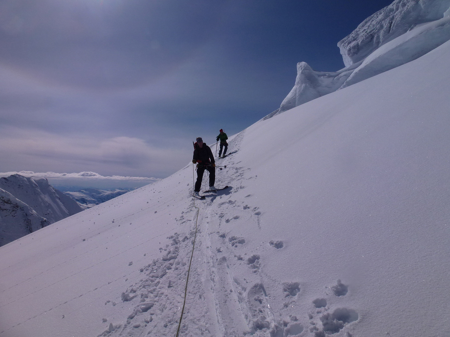 We guided a ski ascent of Mount Sir Wilfrid Laurier in the Premier Range of the Cariboo Mountains April 25-26, 2016. We had what felt like ideal Spring ski mountaineering conditions with clear skies, calm winds and good overnight melt-freeze recovery.