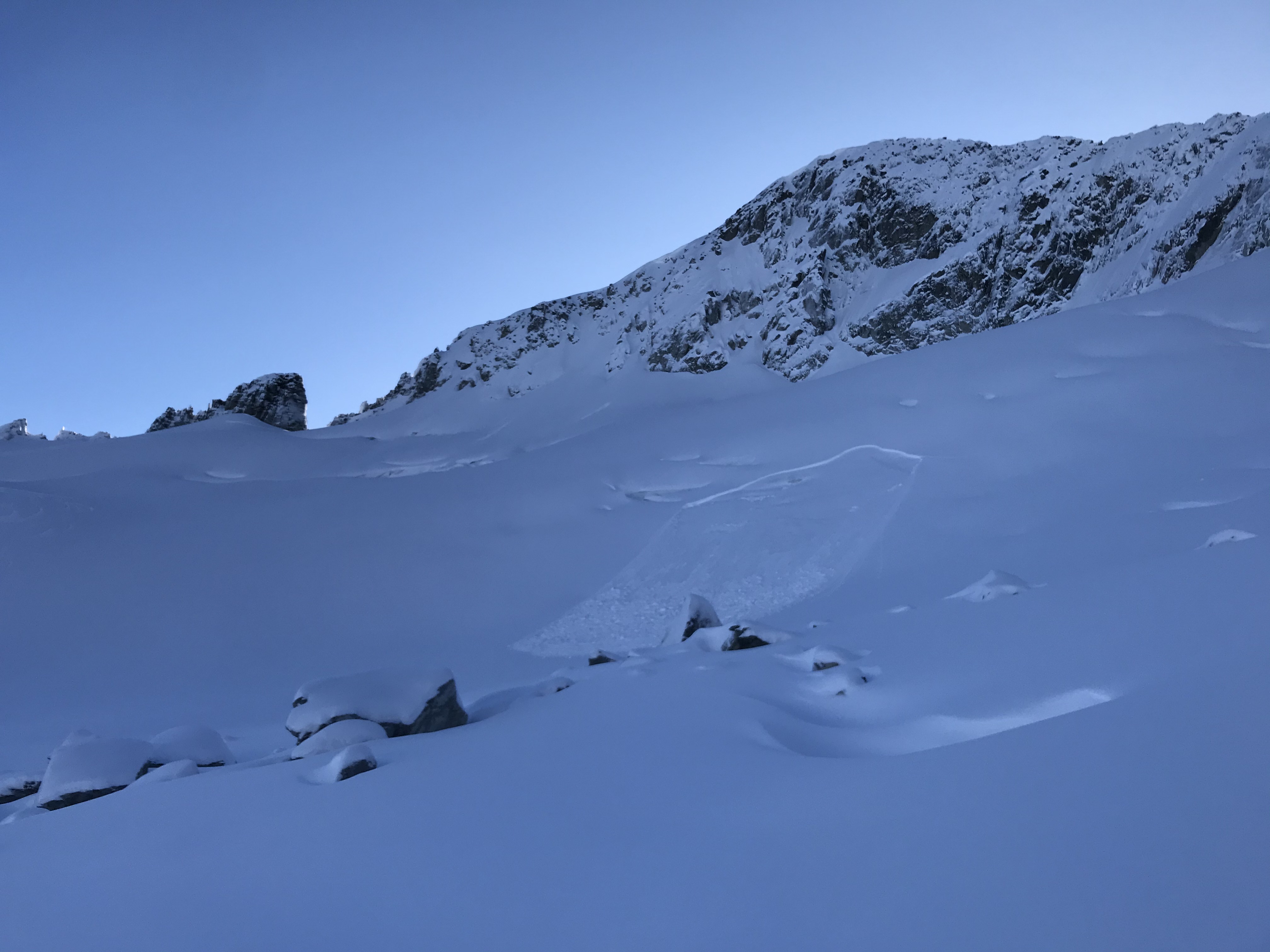 Cool and clear day with light-mod NW winds at ridgetop. 5-10cm of recent low density snow on top of a stiffer 50cm slab above a 10cm facet layer lying on a crust. This slab was producing several whumphs throughout the day with skier traffic and Moderate Sudden Collapse results in a test profile at 2220m, N aspect. As well, we remotely triggered a size 1 from 100m away on the Spearhead Gl, N aspect, 2220m. We saw a few natural avalanches up to size 1.5 as well on similar aspects. This is definitely a layer to watch for, especially with the incremental loading we will see in the next little while.