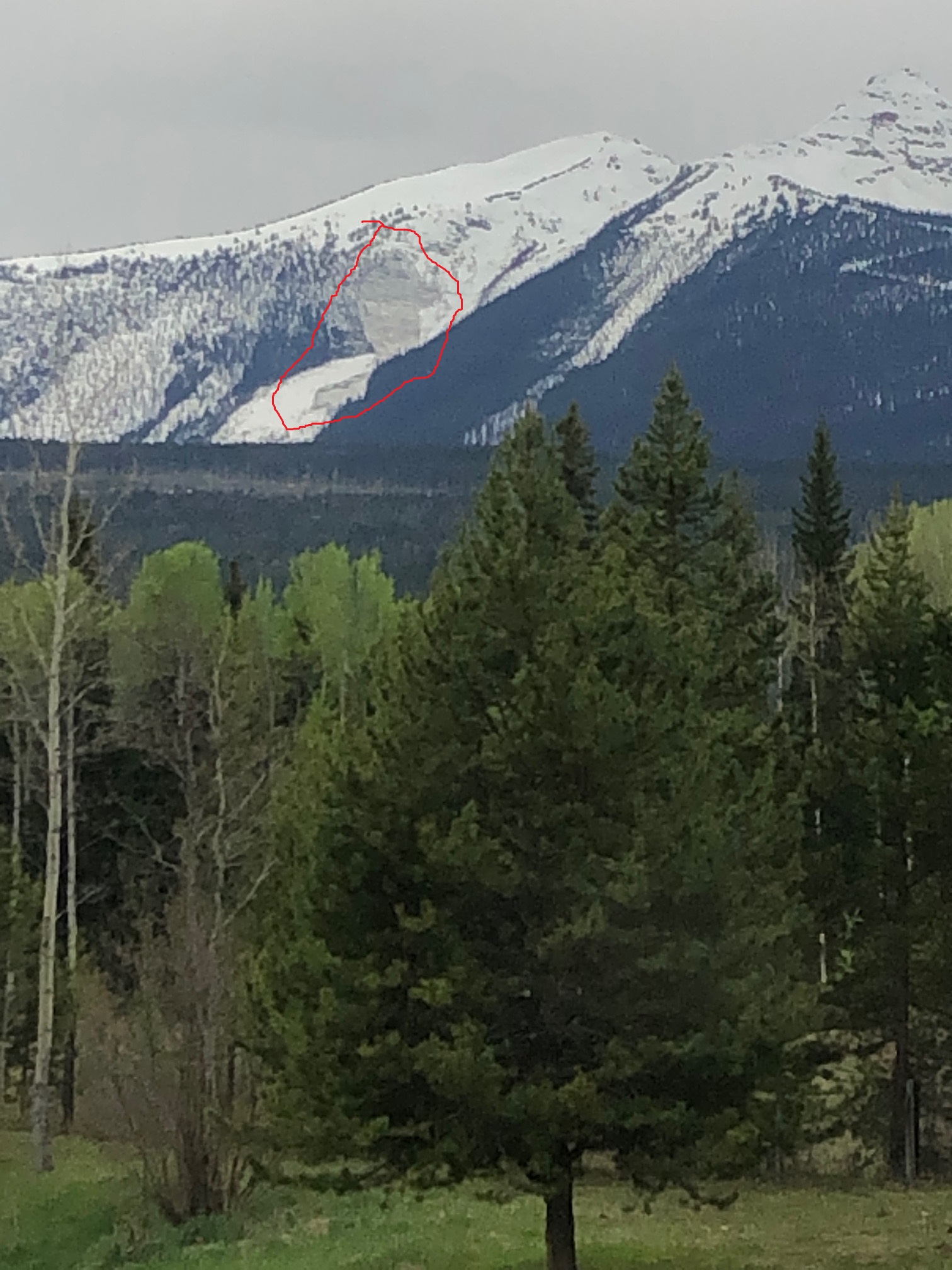 Today I noticed a large slab on Mica Mountain, in the Cariboo Range near Tete Jaune Cache BC. (while hanging out my laundry.)