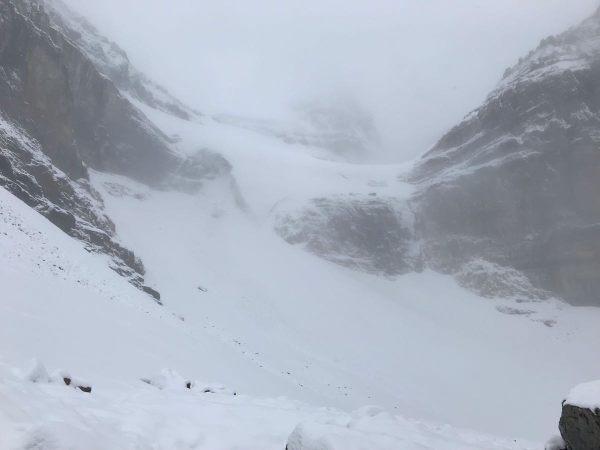 Attempted a guided ascent of Mt. Aberdeen today. We turned around near the toe of the Aberdeen glacier due to snow and avalanche concerns. Roughly 15cm snow had fallen at this elevation (2500m) (likely more higher up) and there was evidence of a recent slide near the toe of the glacier. 20-30 min after turning around (9am) we heard/witnessed the morning avalanche cycle let loose with numerous slides coming from many of the adjacent alpine slopes and gullies.
