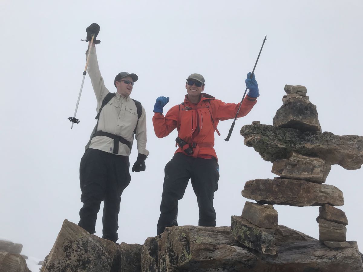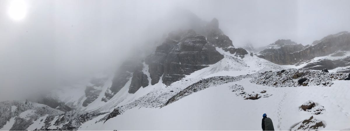 Our plan B was Mt. Fairview (2744m) which went well but, was not in typical summer conditions. The recent snow has made route finding a bit tricky in certain spots where drifted accumulations of snow hid the main track. We met one party that turned around on their attempt but later changed their minds and decided to follow us up to the summit. We were happy to break trail and chat with them along the way.