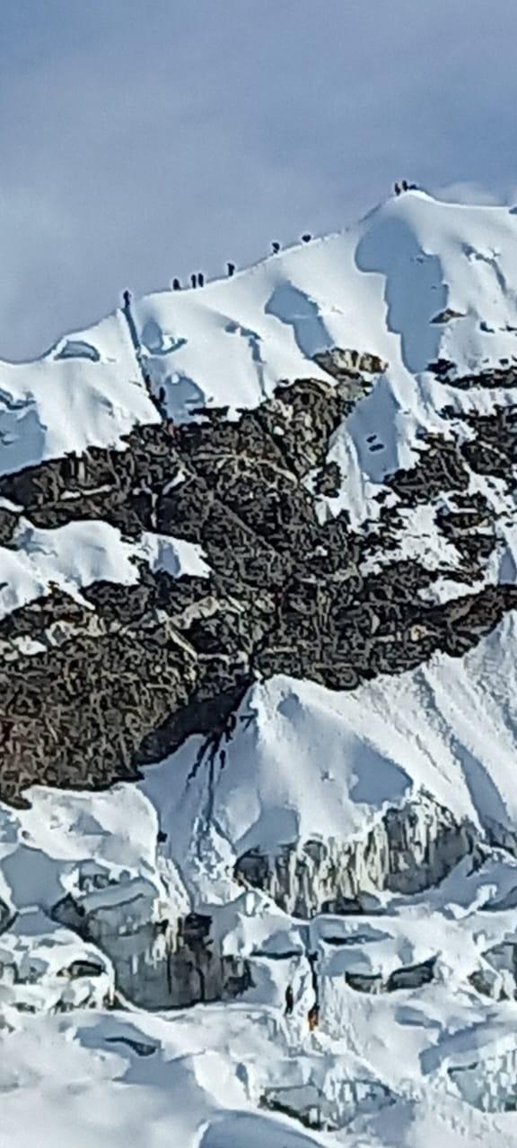 I’ve attached a photo from Da Jangbu of the rock step on Island Peak, which was all snow and ice last year.