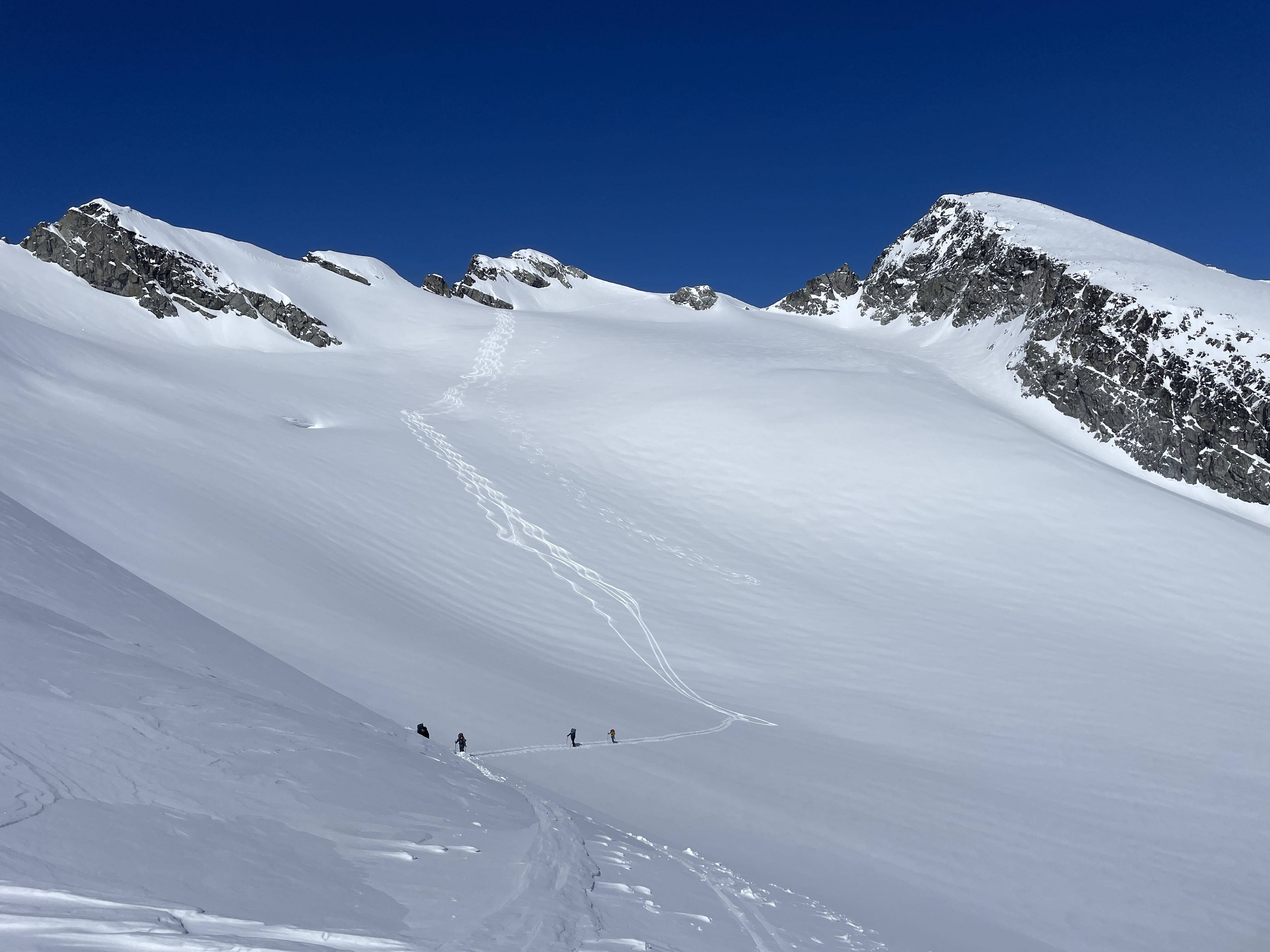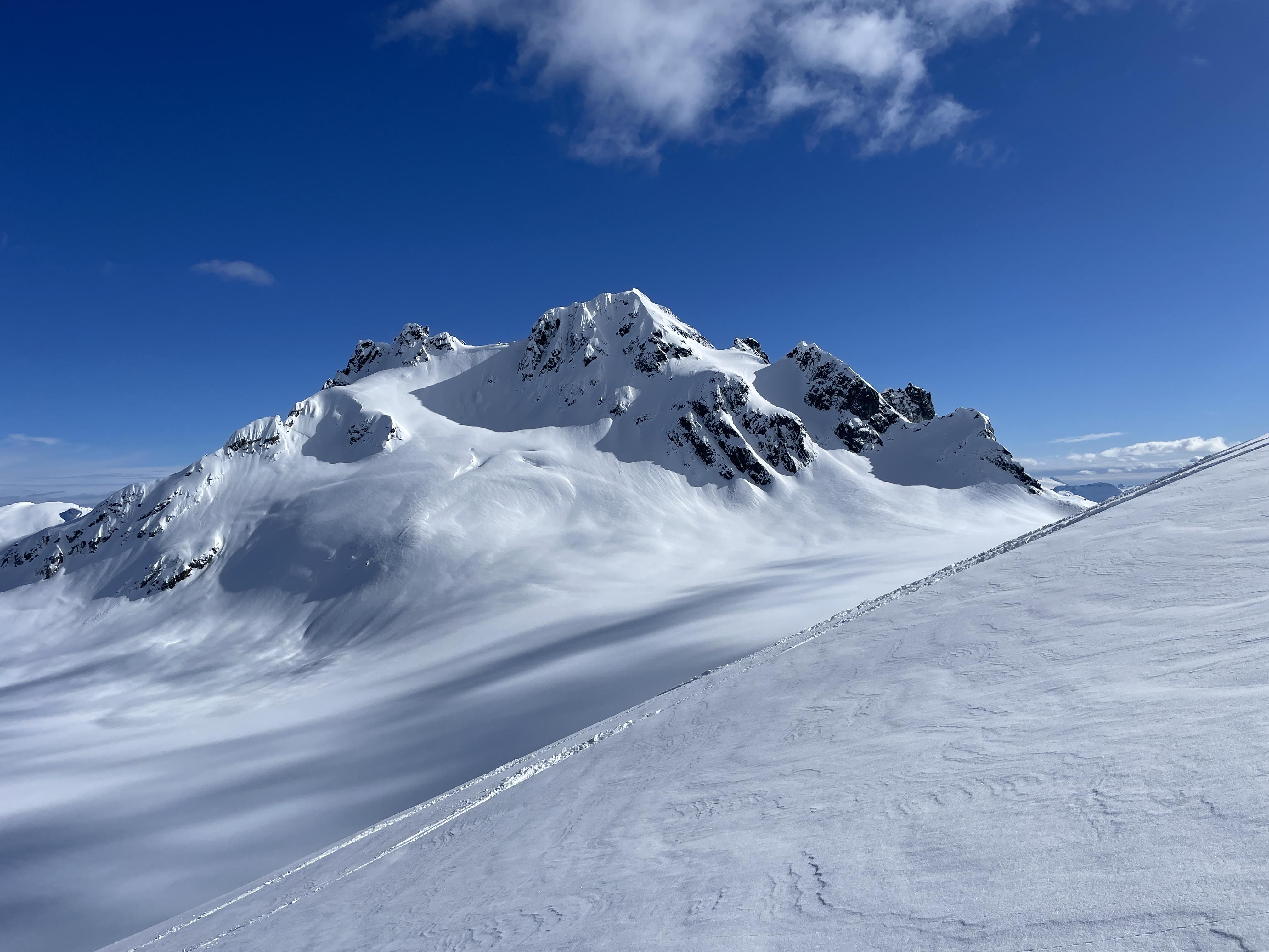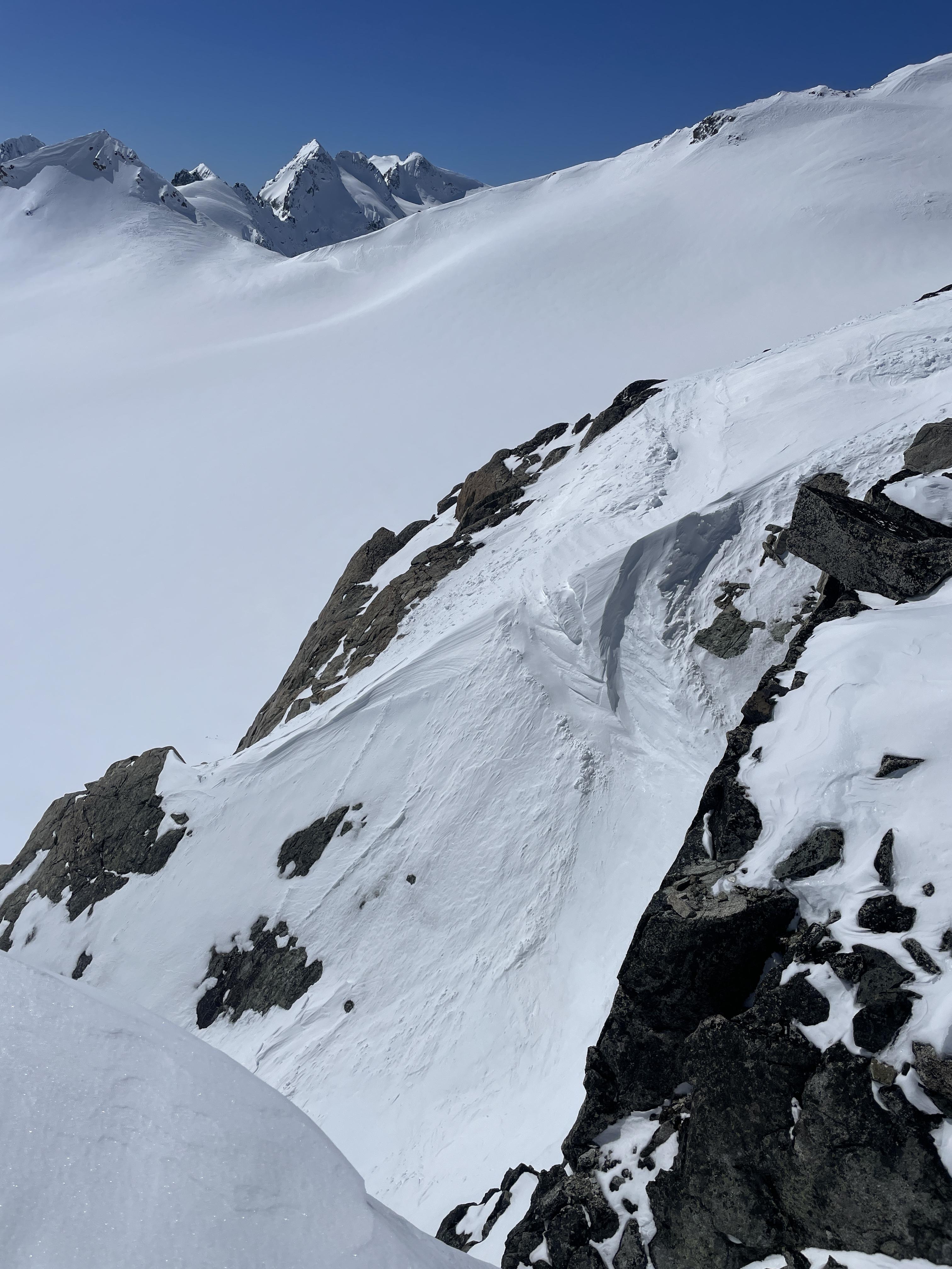 We had stellar cold conditions as well post April 2nd storm which dropped about 25cm of new snow in the Alpine. By April 6th on our last day, we started to see a breakable melt-freeze crust on all aspects except for N aspects above 1700m which had soft unconsolidated snow with some high exposed glaciers having widespread wind press. We did not see much in the way of significant avalanche activity. Height of snow at 2200m on Tremor Gl. was 260cm.