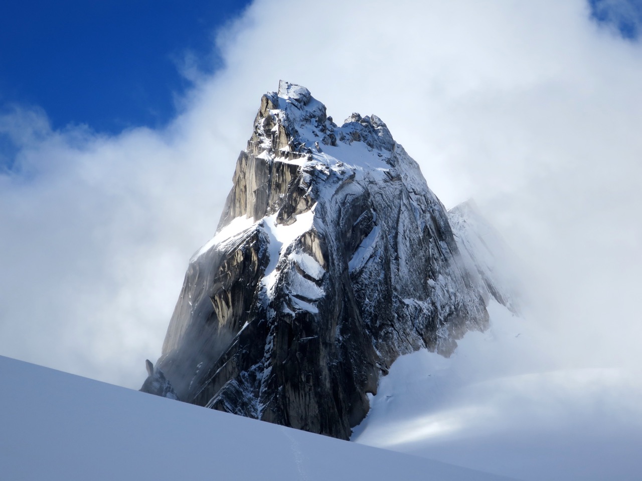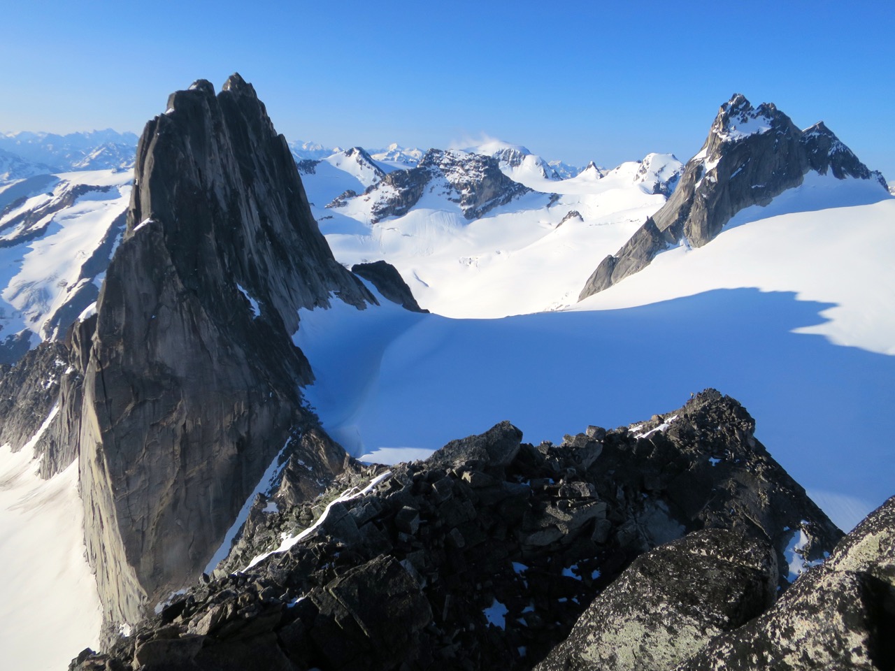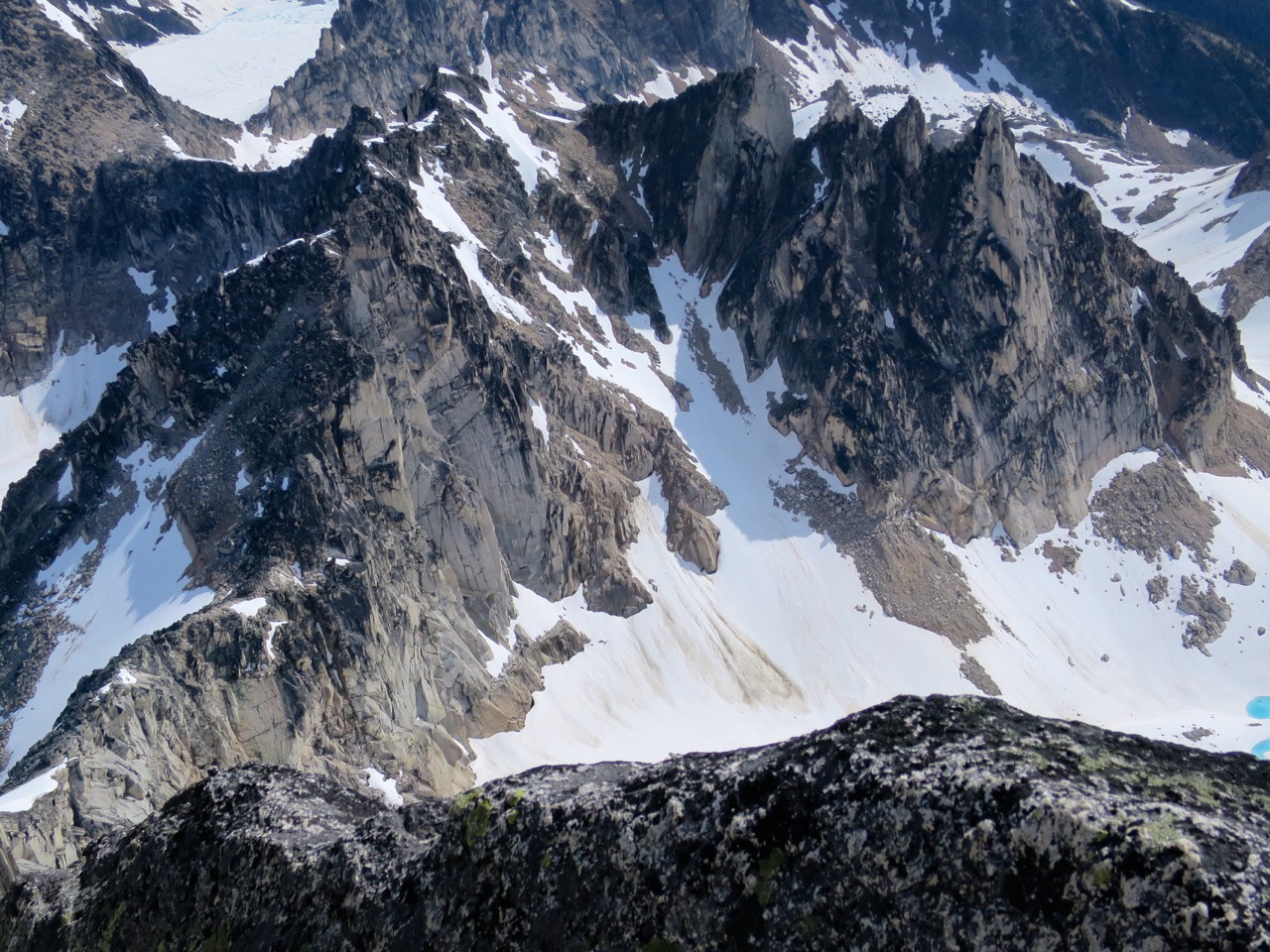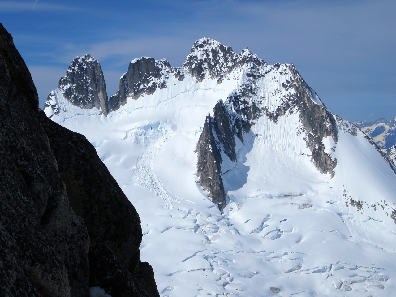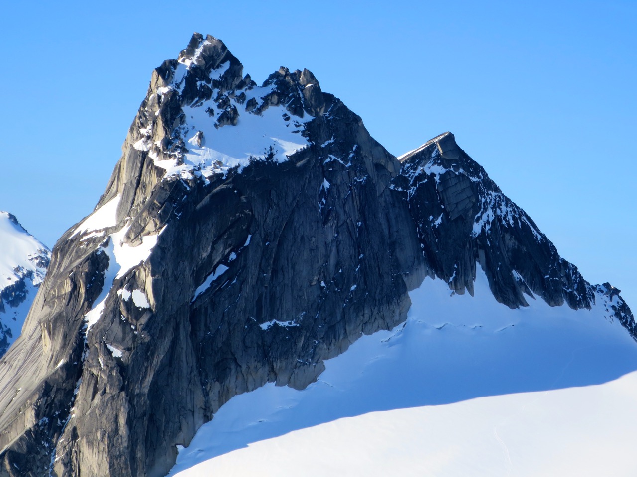 - Didn’t get a look at the NE Ridge of Bugaboo, but suspect it still has some snow