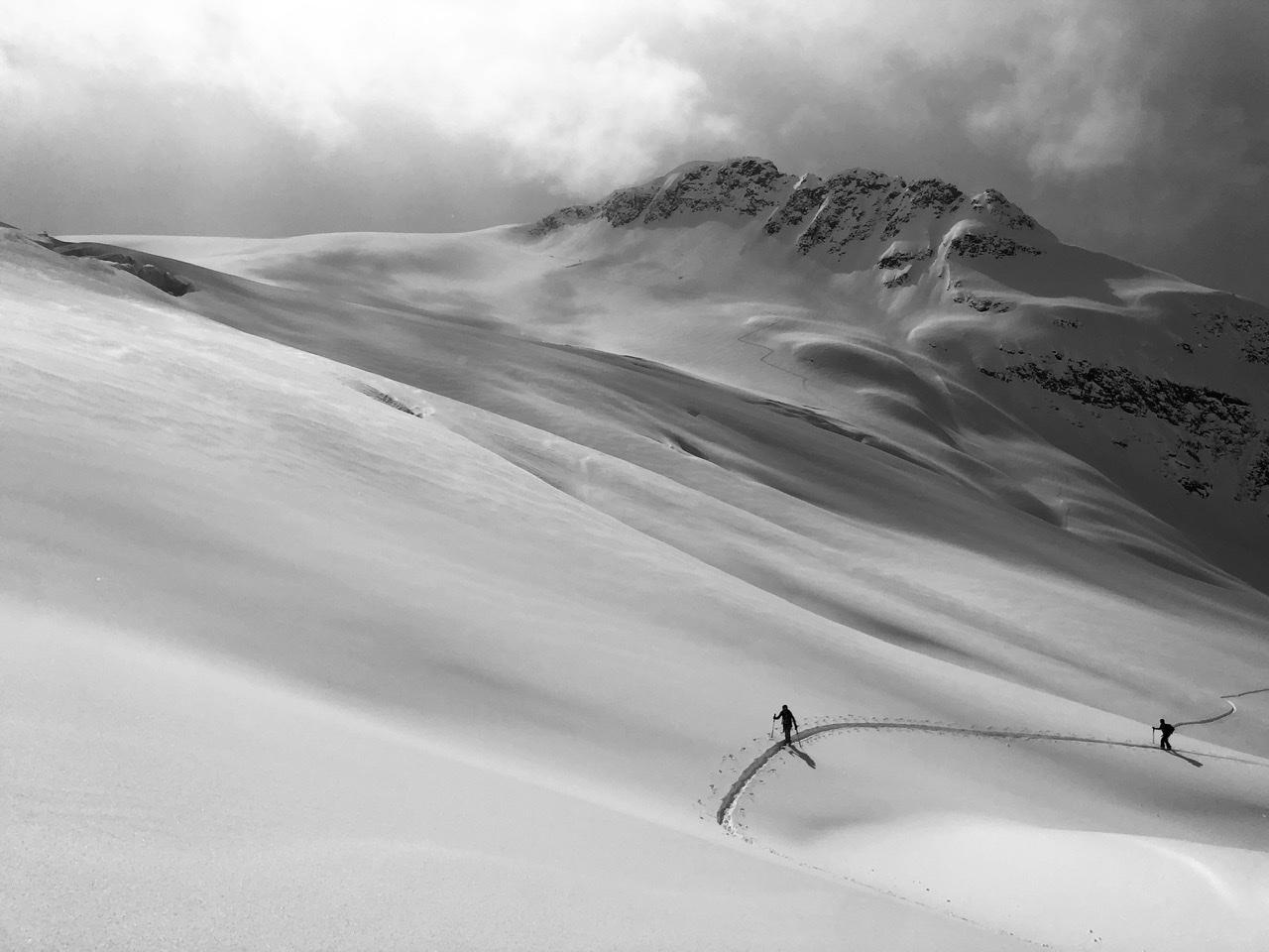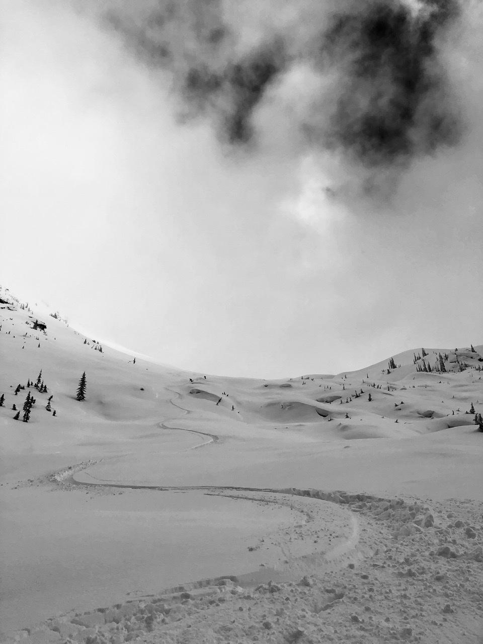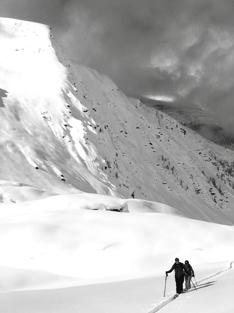 We skied settled buckle top dry powder to 1450m. When the sun was out it was high in the sky and packed a punch. Spring convective showers are abound, so be prepared for some whiteout navigation.