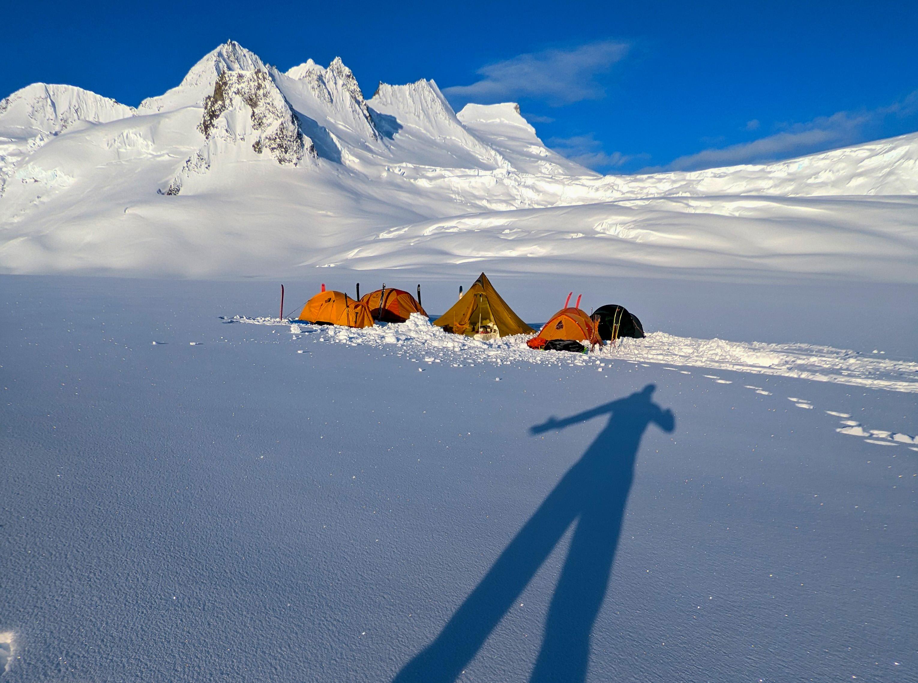 We were very lucky to exit the area yesterday, thanks to a break in the storm and a skilled helicopter pilot. This area is much more known for alpine rock climbing on nearby Devil’s Thumb however, it is also very suitable for ski touring/ski mountaineering basecamps.
