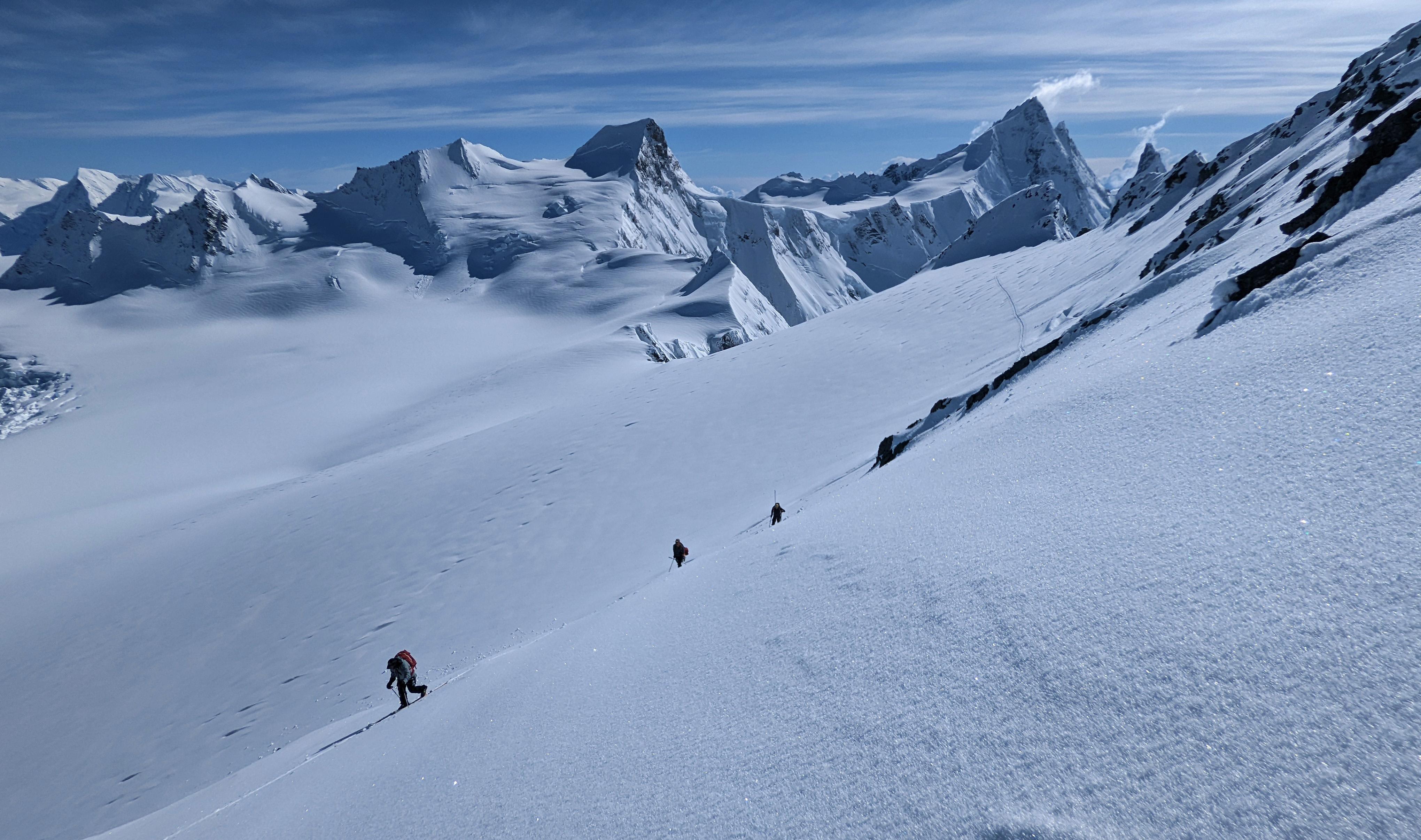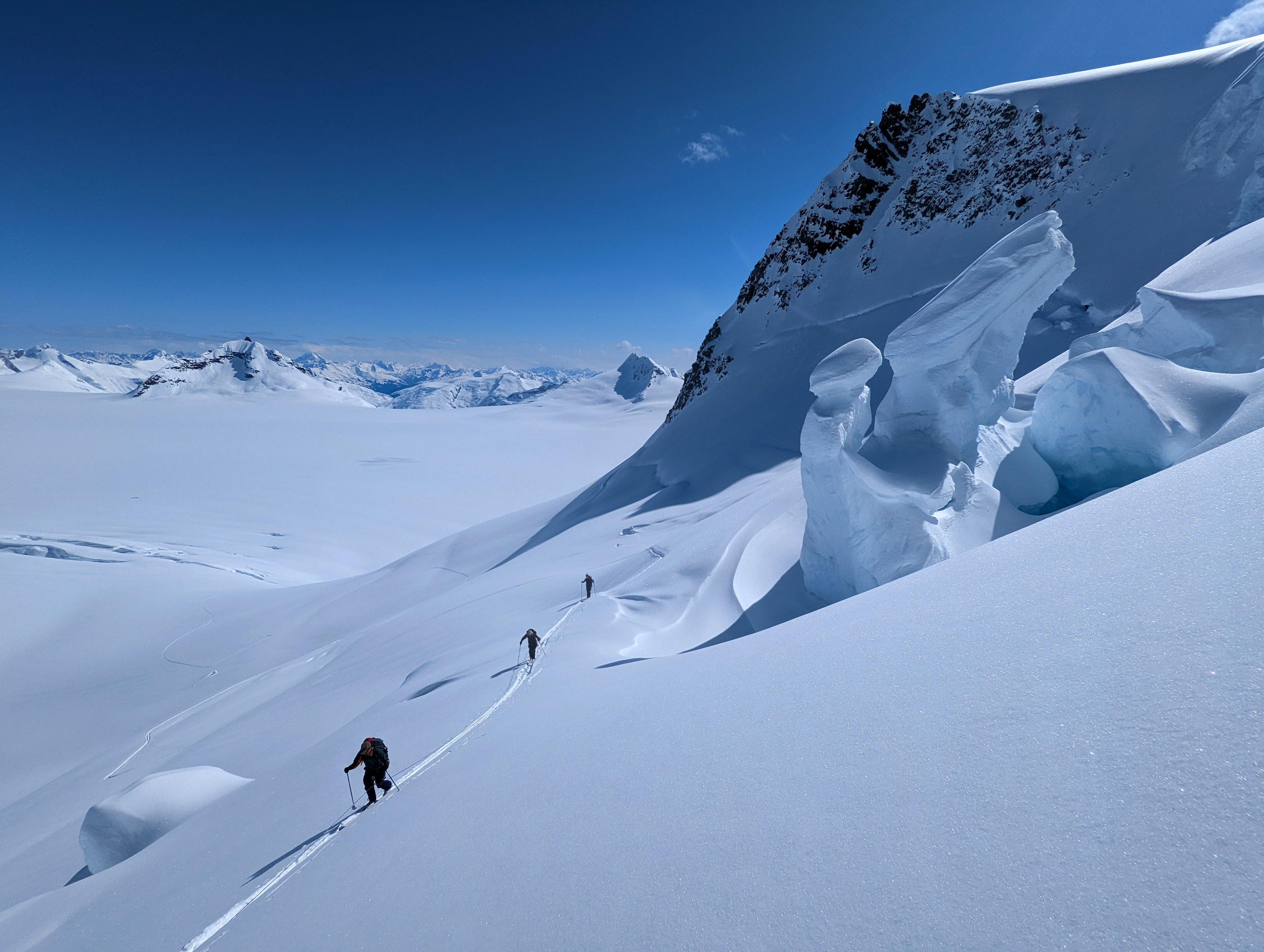 We just returned from a fantastic ski-mountaineering trip to the Alaskan side of the Stikine icecap in the Northwest Coast mountains from April 25 to May 2, 2022. We flew to our starting point, partially up the Baird Glacier, with Petersburg based Temsco helicopter. From there we skied up glacier, pulling sleds, and established various camps in key locations on the upper Baird glacier.
