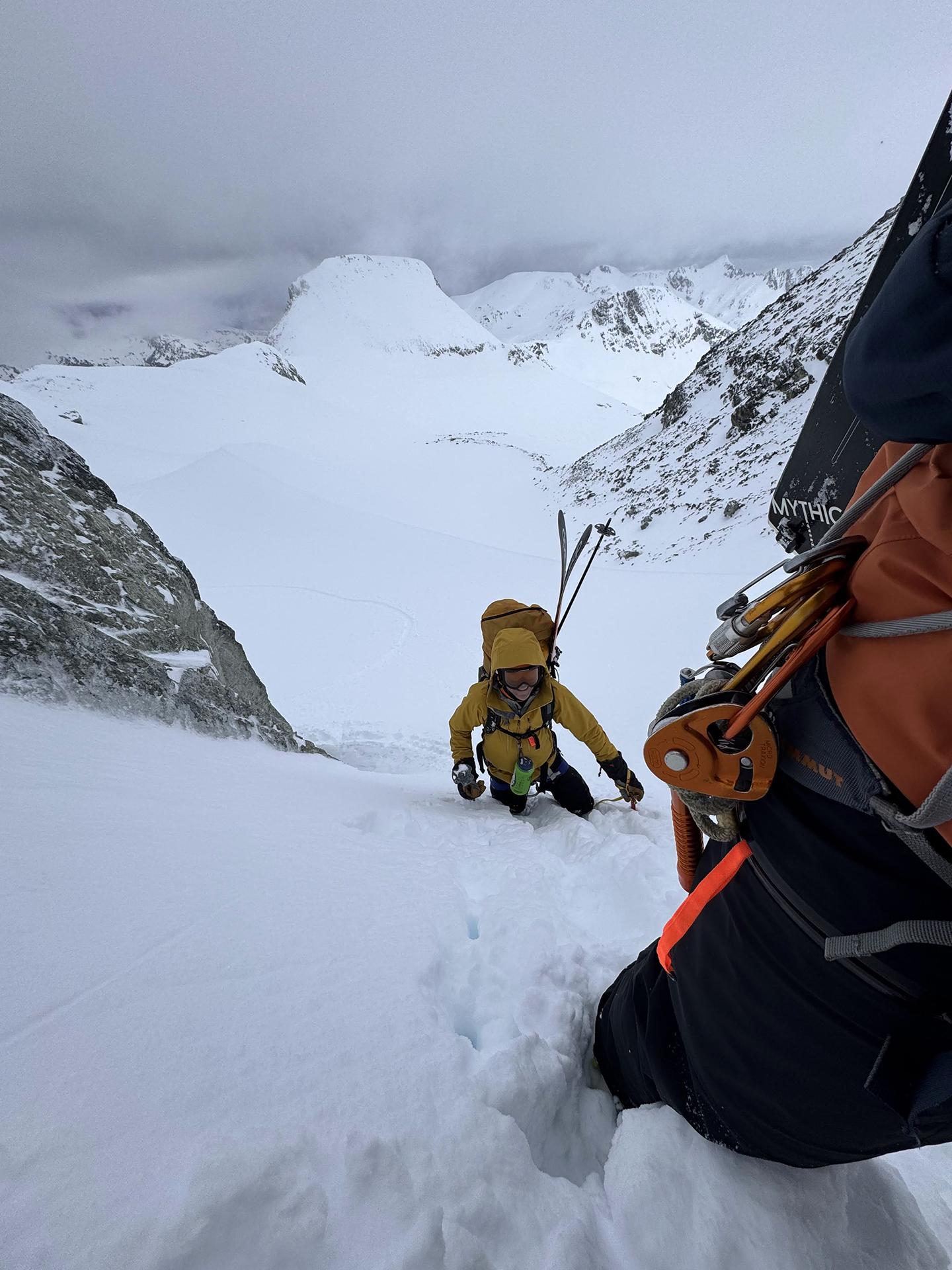 ACMG guide Jeff McKeough and I completed a variation of the Spearhead Traverse this past weekend with 5 guests. Essential gear was glacier ropes, crevasse kits and ice axes. Ski crampons and regular crampons were not used.
