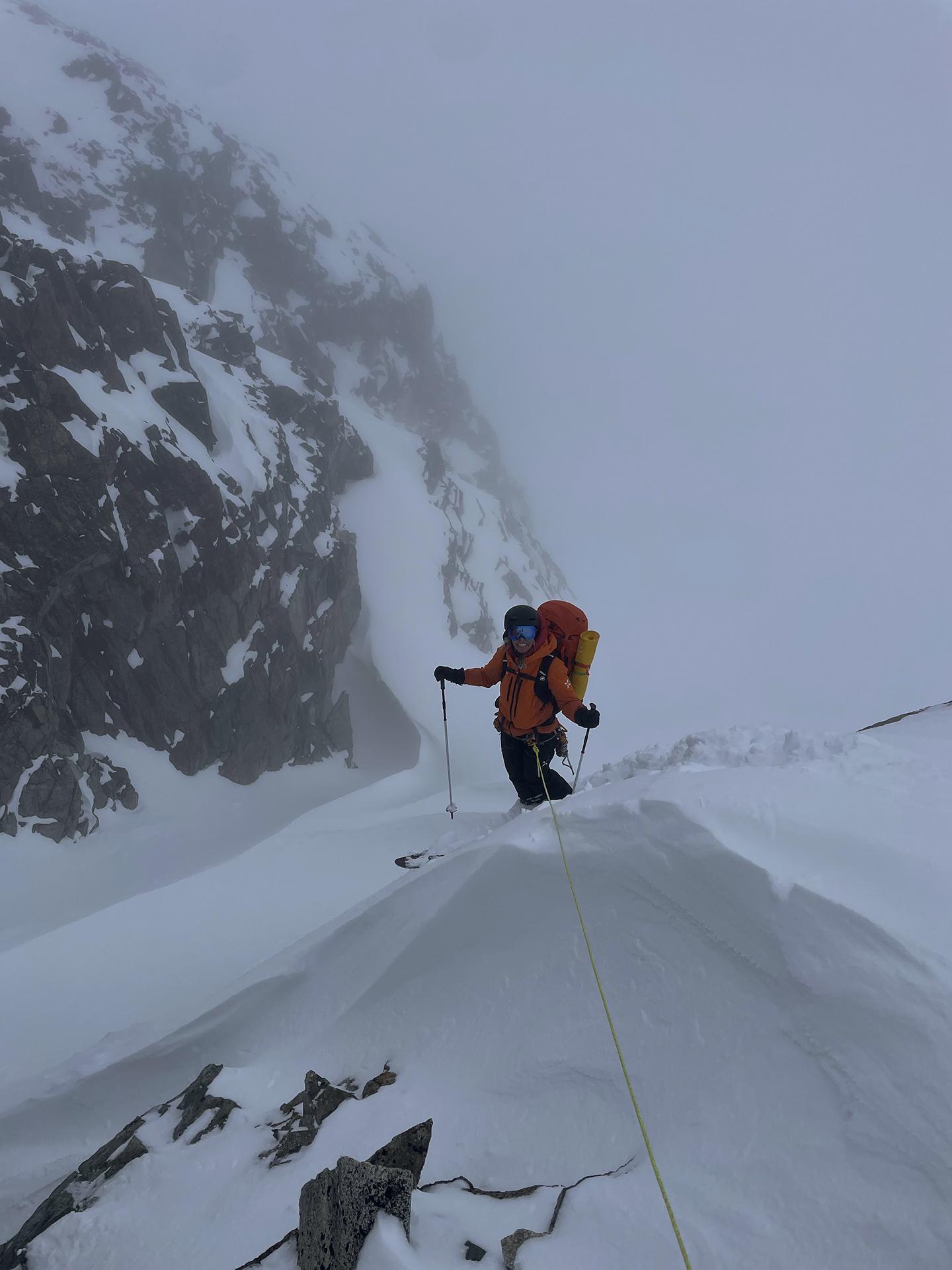 Day 2: 5-10cm of new snow had fallen overnight and temperature dropped to -7°C. We established the bootpack via the typical Patisson route with big bucket steps. We were able to ski tour all the way up Tremor col and visibility diminished to zero on Platform glacier and beyond. Track setting was easy with now 10-20cm of dry HST, with the deepest deposit of 45cm above the melt-freeze crust at Ripsaw glacier. The skiers’ right line of Ripsaw-Naden col was used and ski cut with minimal sluffing. A natural size 3 avalanche had slid from south side of Couloir ridge from around 2400-1850m. The clouds lifted and the Couloir ridge walk was used. Moist snow was found up to 2250m while ski descending south onto Iago glacier.