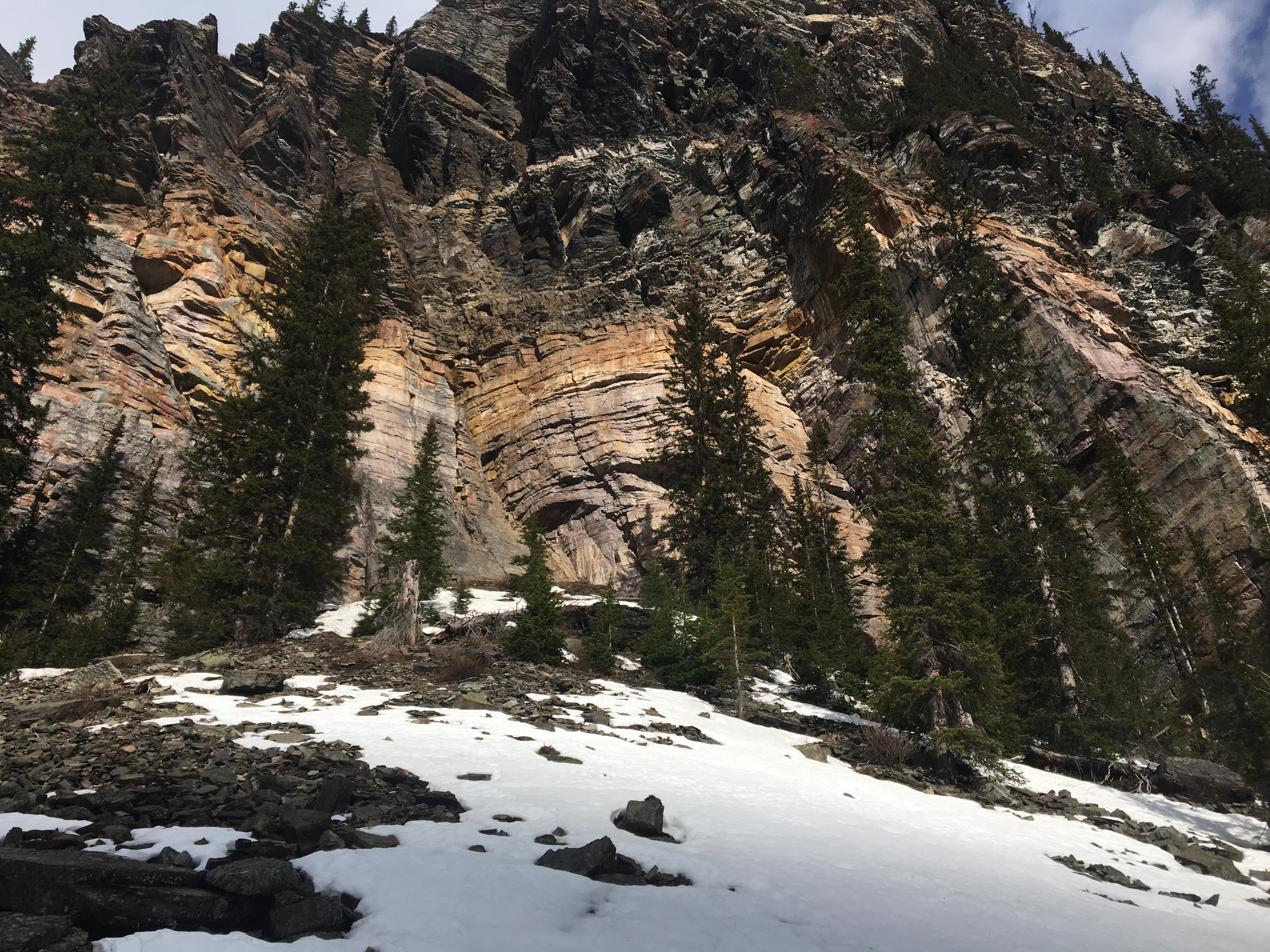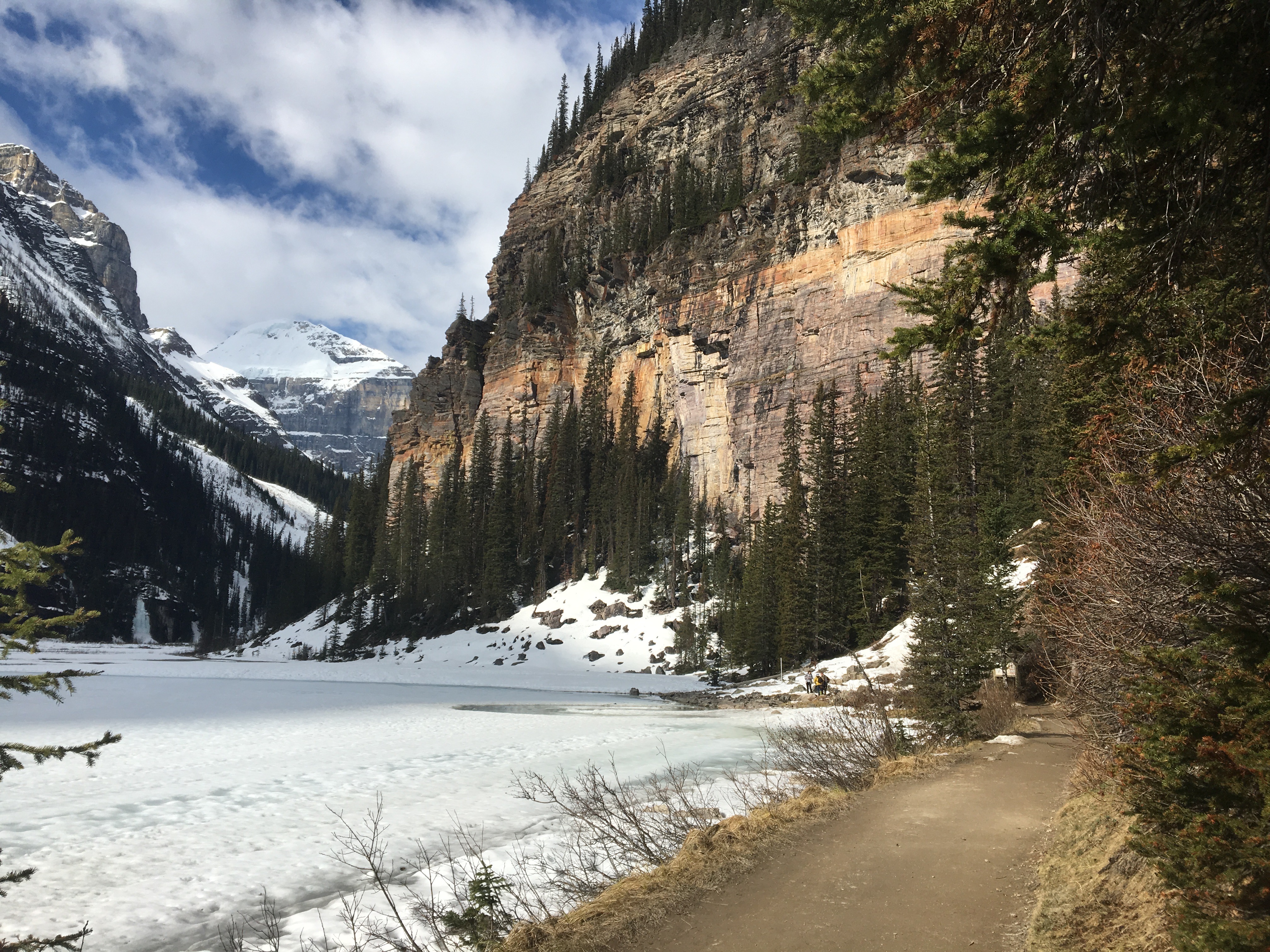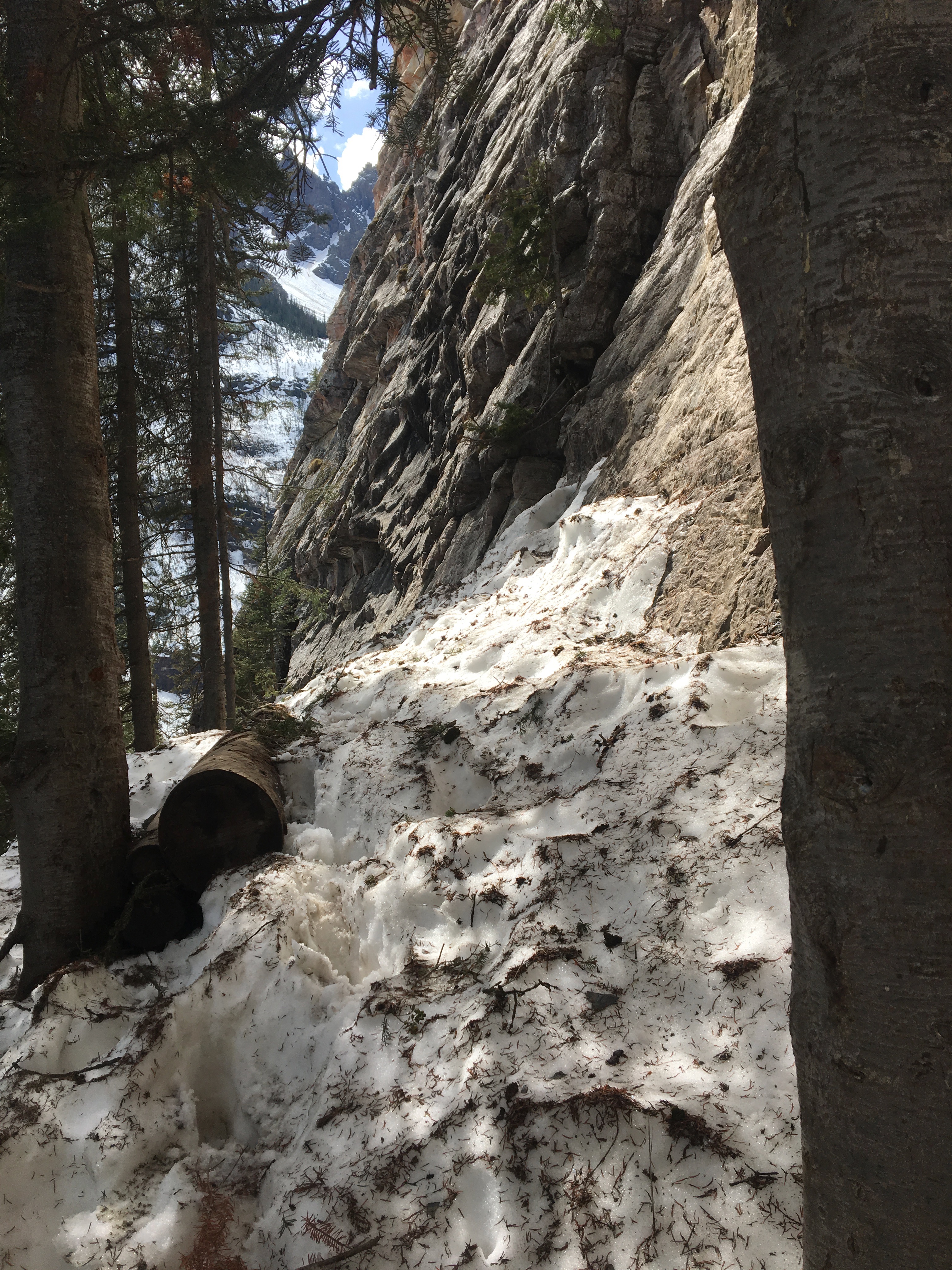 Went for a short cragging session down to the Back of the Lake at Lake Louise this morning, and found a lot of snow along with some dry patches. Some highlights: