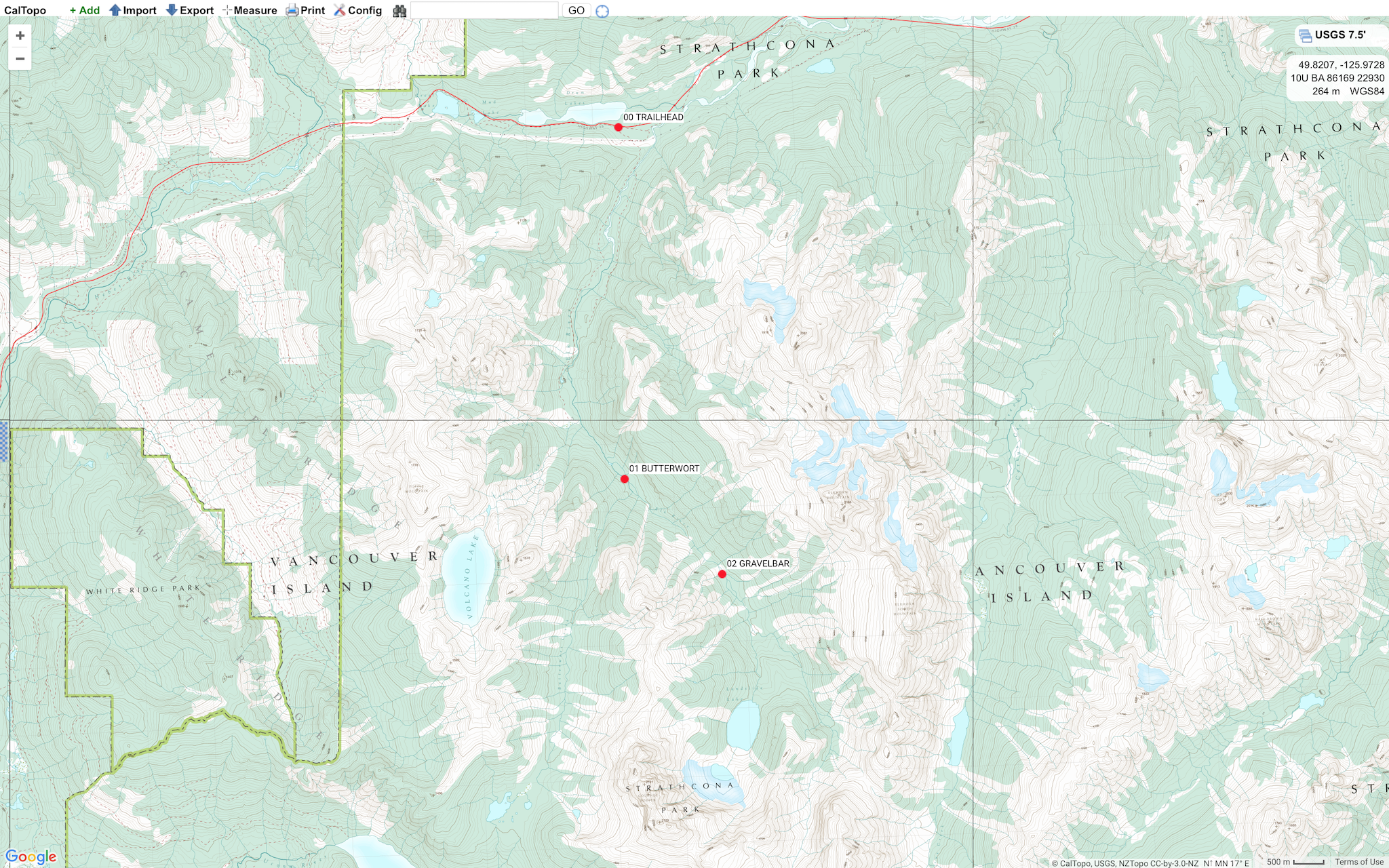 The Elk River Trail is a spectacular valley-bottom hike through thick stands of temperate old-growth rainforest. The 11 km route to Landslide Lake, 890 m GR 950161, is one of the more popular trails in Strathcona Park. Landslide Lake sits at the bottom of 2135 m Mount Colonel Foster. The Colonel’s impressive 1000 m northeast face is a famous Vancouver Island alpine climbing zone. There are designated backcountry sites in the Elk River Trail Fee Collection Area (Butterwort Flats, 6 km GR 932194 and Upper Gravel Bar, 9 km GR 946180). There is no camping available at Landslide Lake. Backcountry camping fees are collected June 15 to September 30. $10 per person/night (ages 16+) and $5 per child/night (ages 6-15). Permits can be purchased online via BC Parks website. There is an iron ranger to drop permit fees at the trailhead. There are no reservations available. The Elk River Trail, with it’s modest 600 m elevation gain over 11 km, is an excellent day trip for the efficient hiker, or an ideal overnighter for novice backpackers.