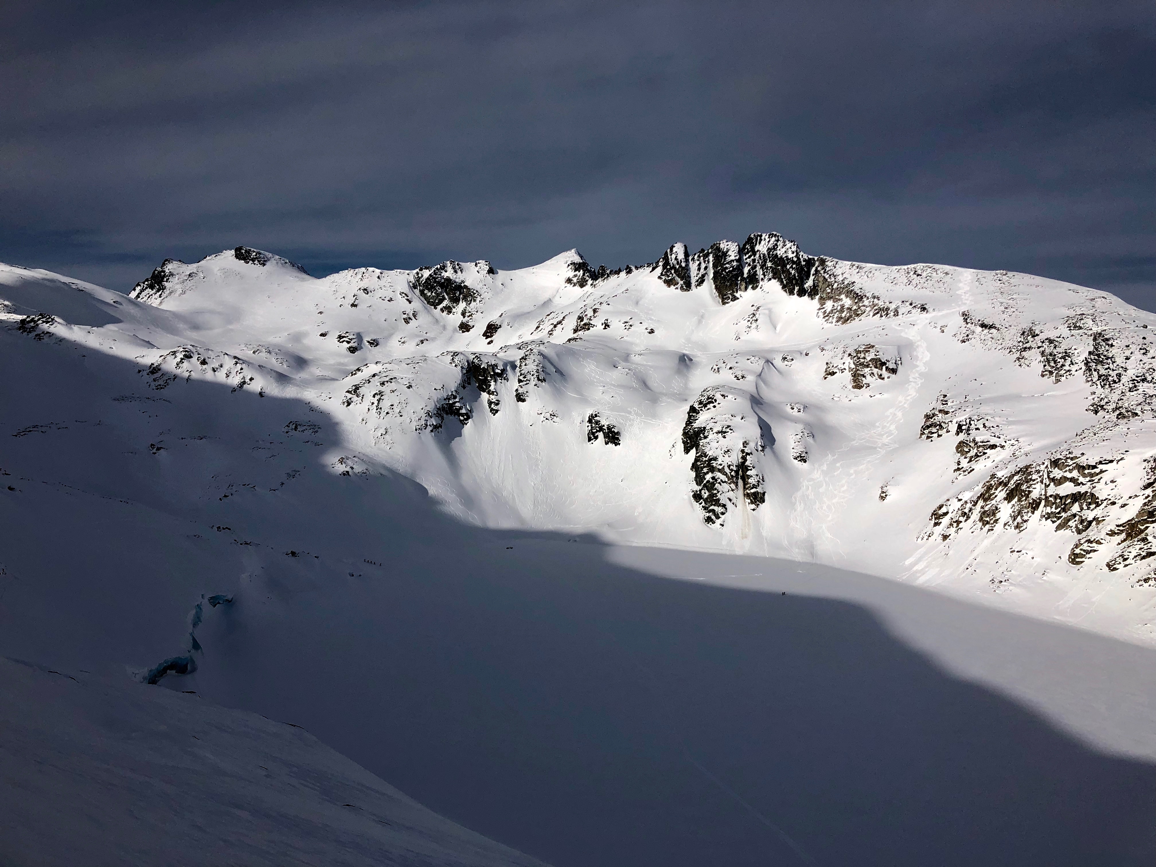 Overall, ski quality was mostly good during the week with the best snow in sheltered north facing locations. Wind exposed alpine features were affected and lowered overall ski quality. Lots of ski tracks in the Blackcomb backcountry showed overall good stability and a high number of travellers.