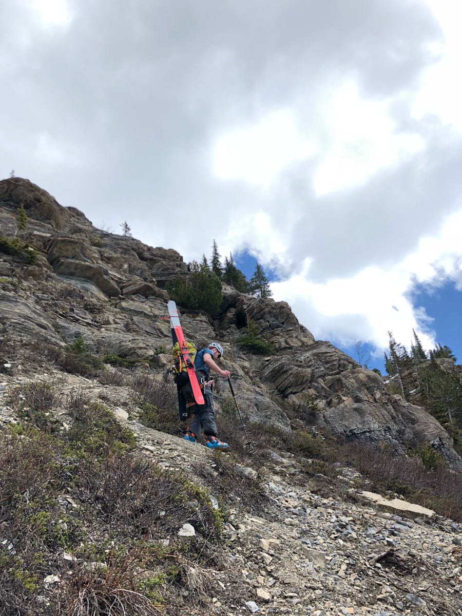 It was a 'challenging' slog up to the waterfalls pitch in near-isothermal snow. There isn't much left to avalanche overhead, and the waterfalls are certainly filled with water and not snow. We hiked the summer access trail to circumvent them.