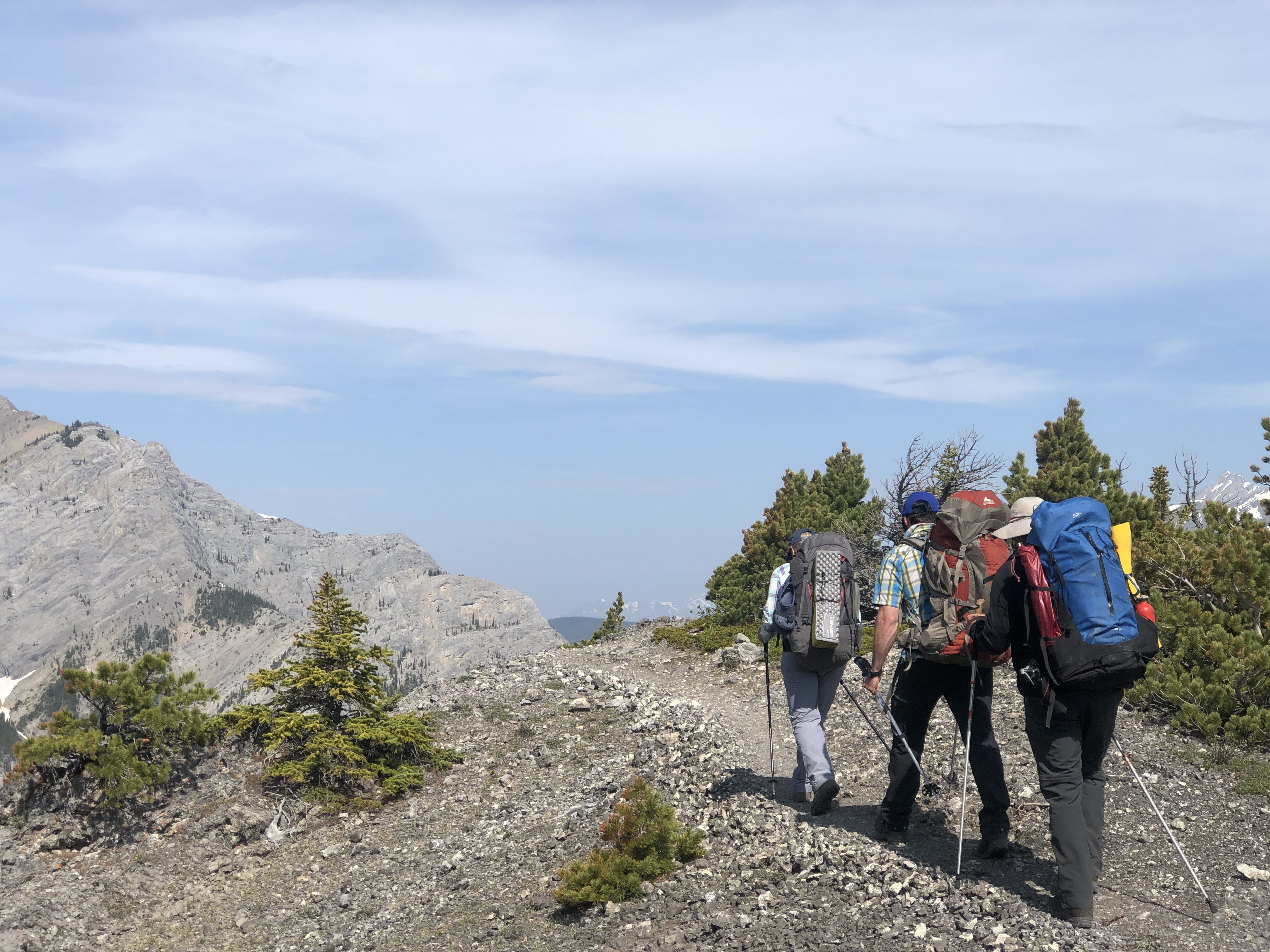 Acmg TAP ran a bridge hiking guides exam (for ski guides) from May 28 to June 1. We traveled in the front ranges to maximum elevation of 2300 m, and found predominantly snow free terrain. Weather was generally pleasant with some isolated afternoon build up of clouds, and some light smoke.