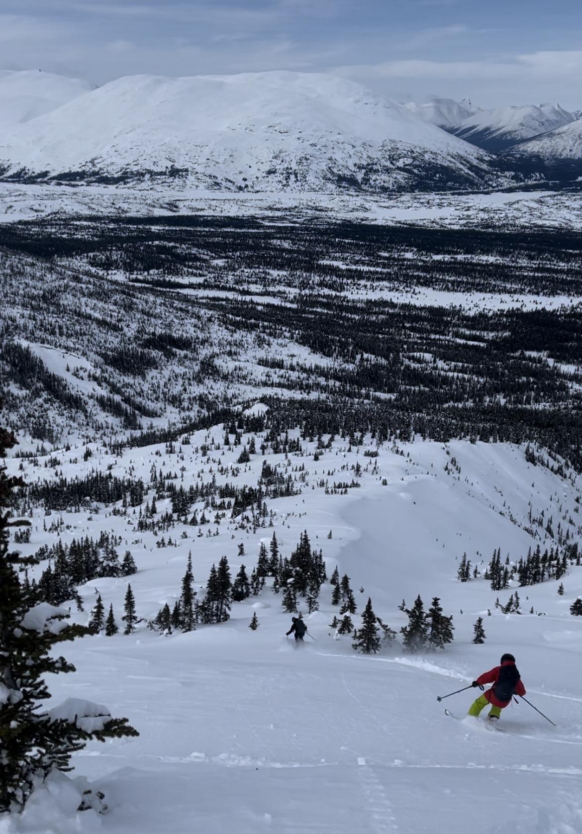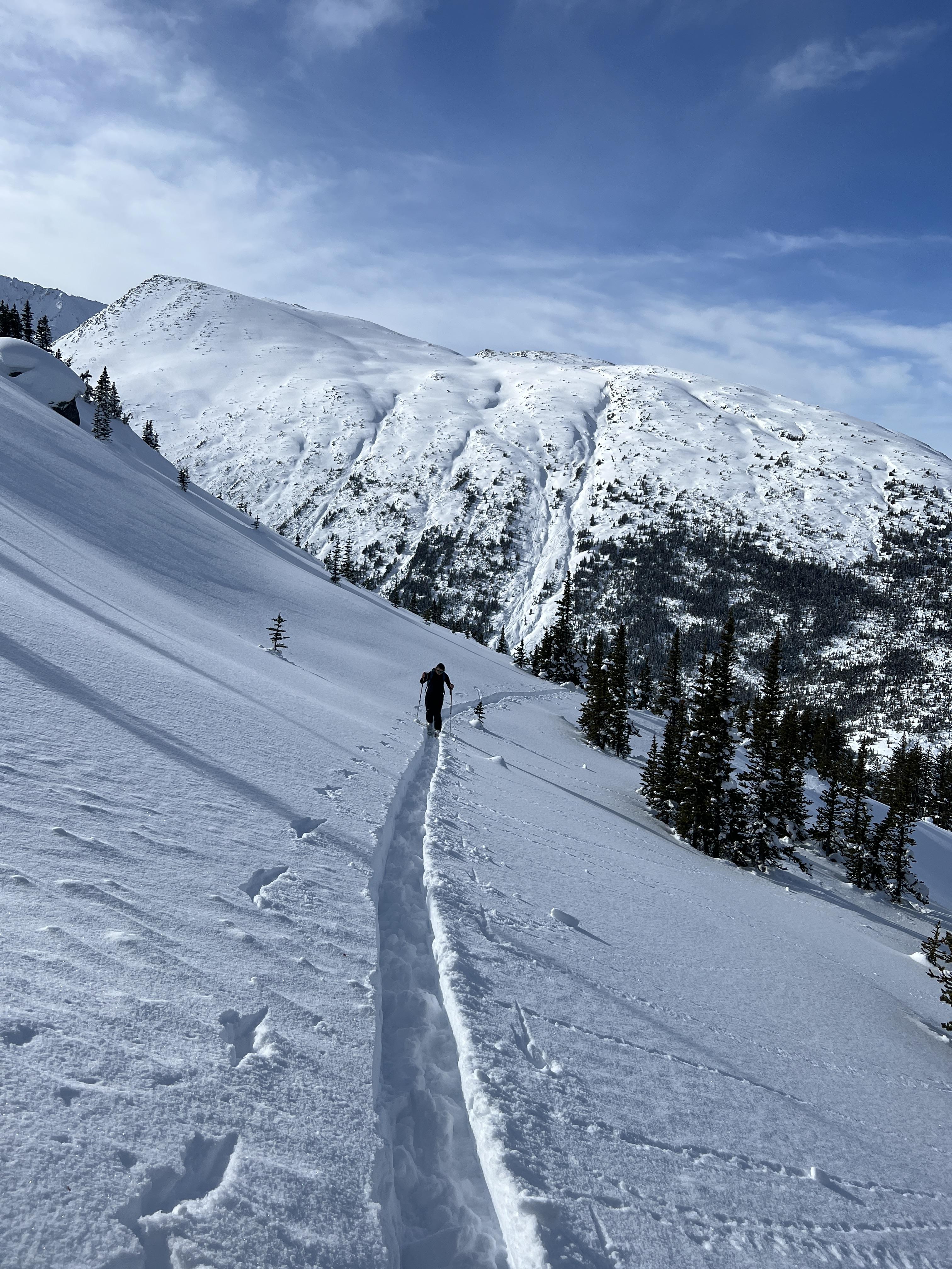 We spent the period of Tuesday March 14 to Sunday March 19 camped out in White Pass doing sled assisted ski touring. We began our trip at the tail end of an extended outflow and surface conditions were largely wind hammered and firm save for very sheltered drainages out of the the main valley. A large storm hit on the night of the 15th and continued through the 16th delivering 50-70cm of storm snow (drainage dependent). The winds and warm temps came in for 24hrs and pressed the storm slab upside down below 1400m and deposited deep wind slabs on northerly aspects. The previous "outflow" surfaces had developed 2-3cm of small facets with the storm snow fell on. Evidence of a Na storm slab and wind slab cycle so size 3 was apparent when the sun came out again on Friday and Saturday. This storm and warm weather were a good test for our persistent week layers but we saw no evidence of persistent slab avalanches or cornice failures in our travels. Perhaps they are done? Perhaps not enough load given their burial depth? Maybe needed more than one day of heat? Time shall tell...... All in all conditions were deep and for two days just getting places was challenging with many stuck sleds and a couple of shredded belts. It was worth it because the skiing was fantastic. Saturday was a very busy day in White Pass with hundreds of sledders and skiers testing many slopes but also keeping it in check for the most part.