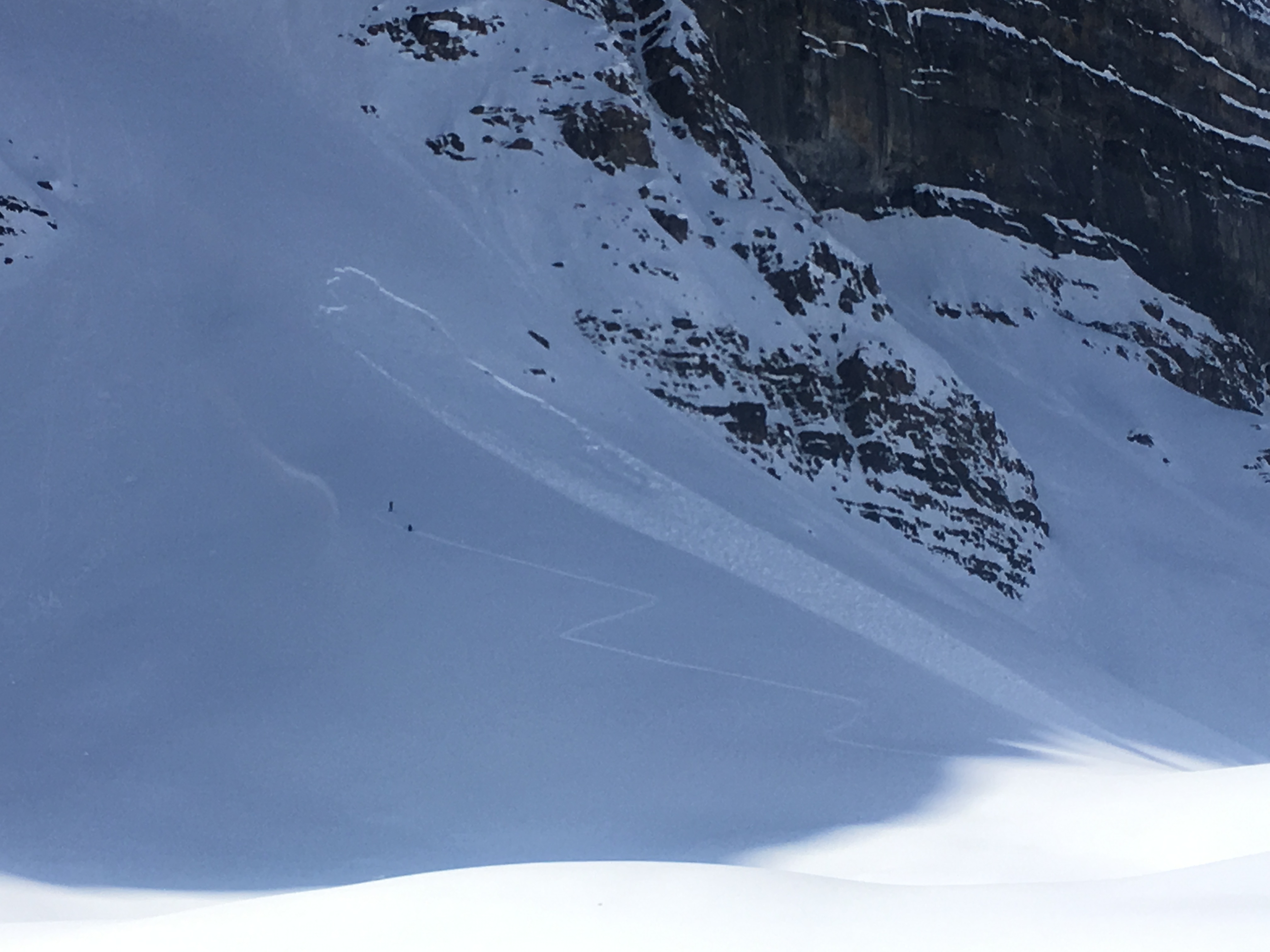 While guiding in the area, we witnessed a party of two remotely trigger a sz 1.5 slab avalanche from 50m away on a steep shaded North aspect face below a vertical head wall. 20-30cm crown (estimated), likely on facets. This slope is constantly in the shade, an ideal facet factory. Despite the prevailing spring conditions, winter problems still exist, stay sharp!