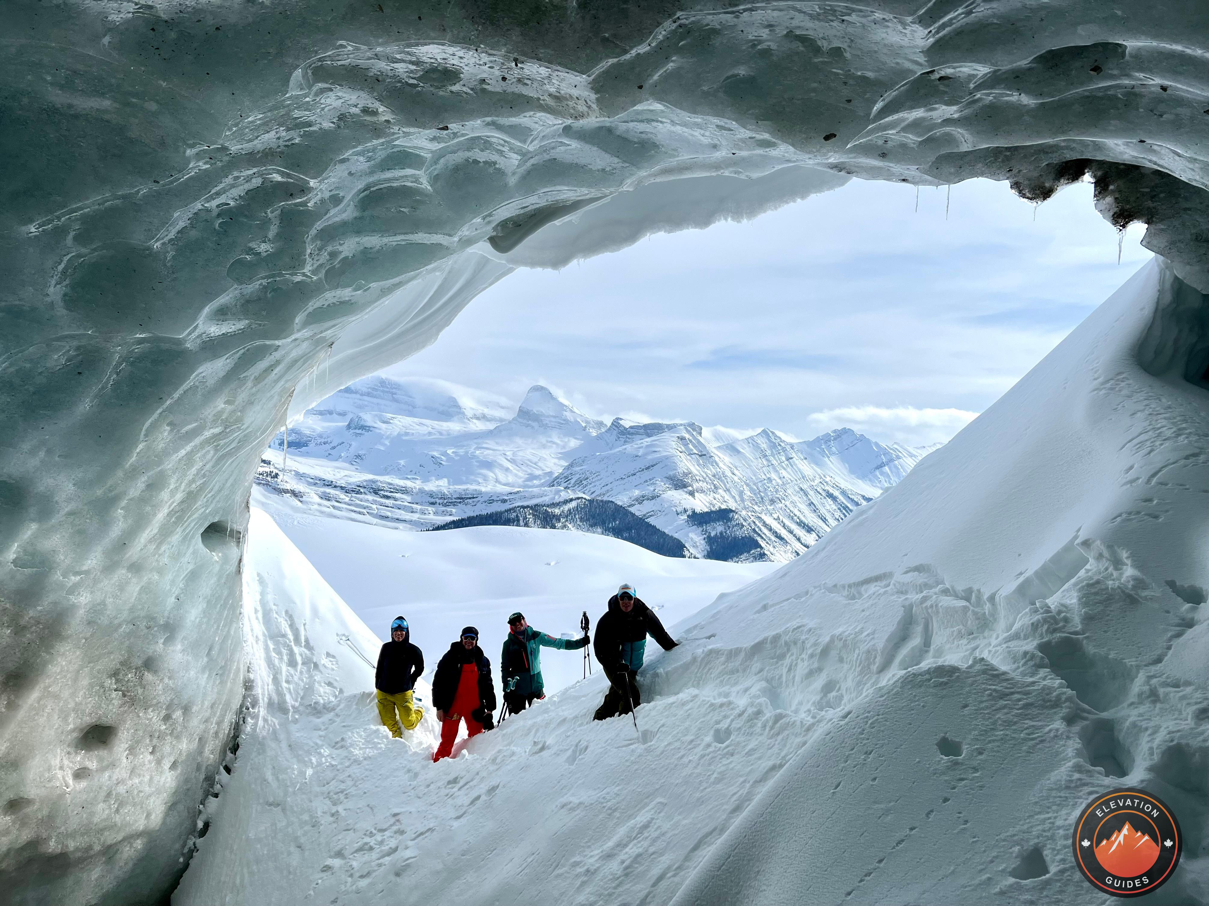Bluebird morning, so we went seeking protected alpine terrain. President Pass was the logical choice. There are many exposed crevasses and a highly variable snowpack distribution therefore we travelled roped up, probing constantly to pre-determine the safest descent route. The rimaye (bergschrund) has a strong 3+ metre bridge to cross. Ski quality was excellent from the col (2900 metres) down to ~2600 metres so we did it twice.