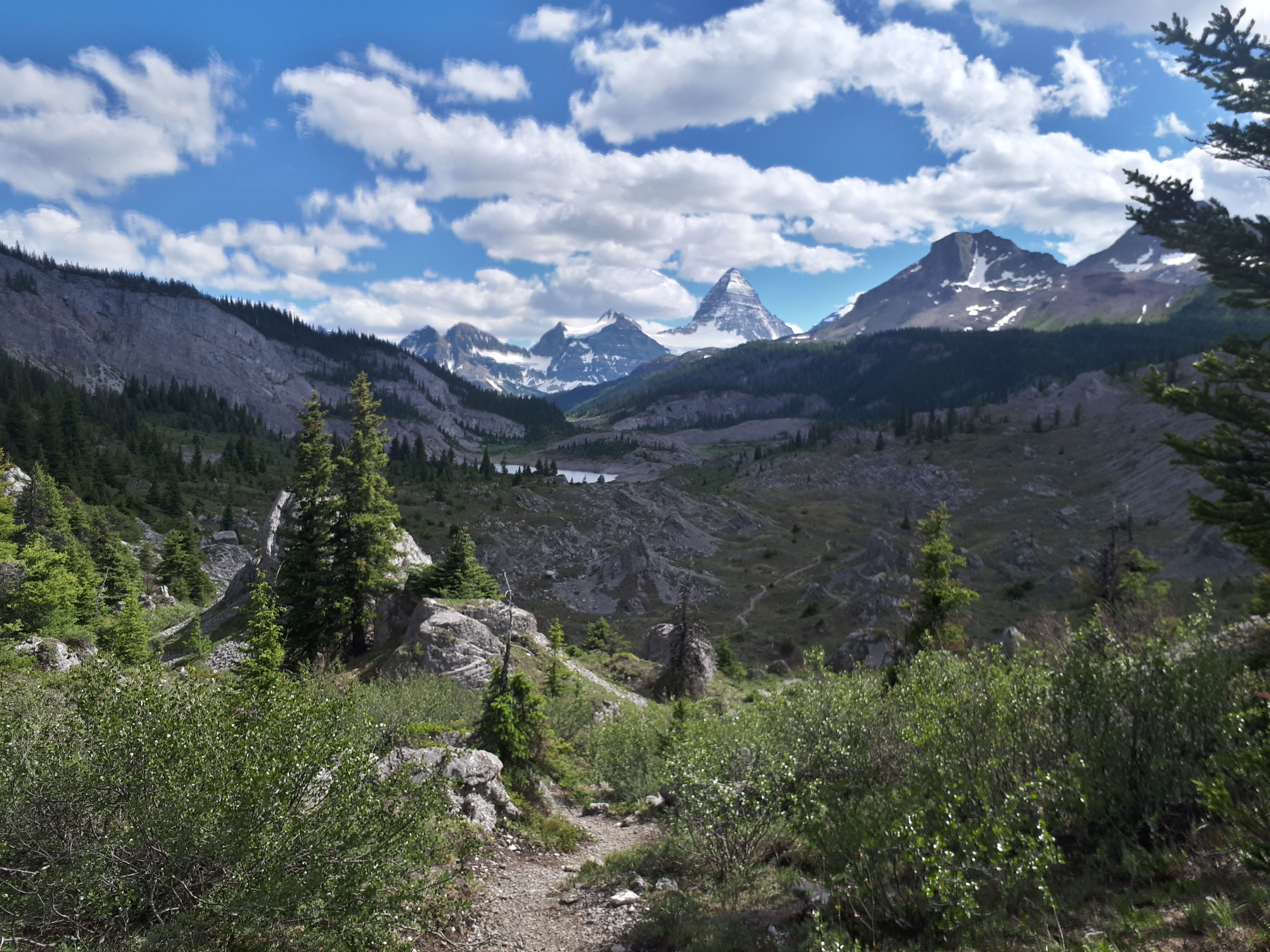 Myself and seven guests just completed a 7 day backpacking trip with Yamnuska Mountain Adventures from Vista Lake (Banff National Park) to the Mount Shark Trailhead (Spray Lakes Provincial Park) by way of Magog Lake and Mount Assiniboine Provincial Park. Overall trail conditions were quite good. There were however extensive muddy patches between Shadow Lake and Egypt Lake, as well as lingering patches of snow on the trail (with good support/less than 5cm foot pen) on the north side of Whistling Pass. Further south, there was very little accessible water between the hill above the Porcupine Junction and Og Lake Campground (fill up those water bladders before descending after the Howard Douglas Lake Campground). Otherwise good travel conditions, particularly so in Mount Assiniboine PP. Enjoy the sunny skies while they last!