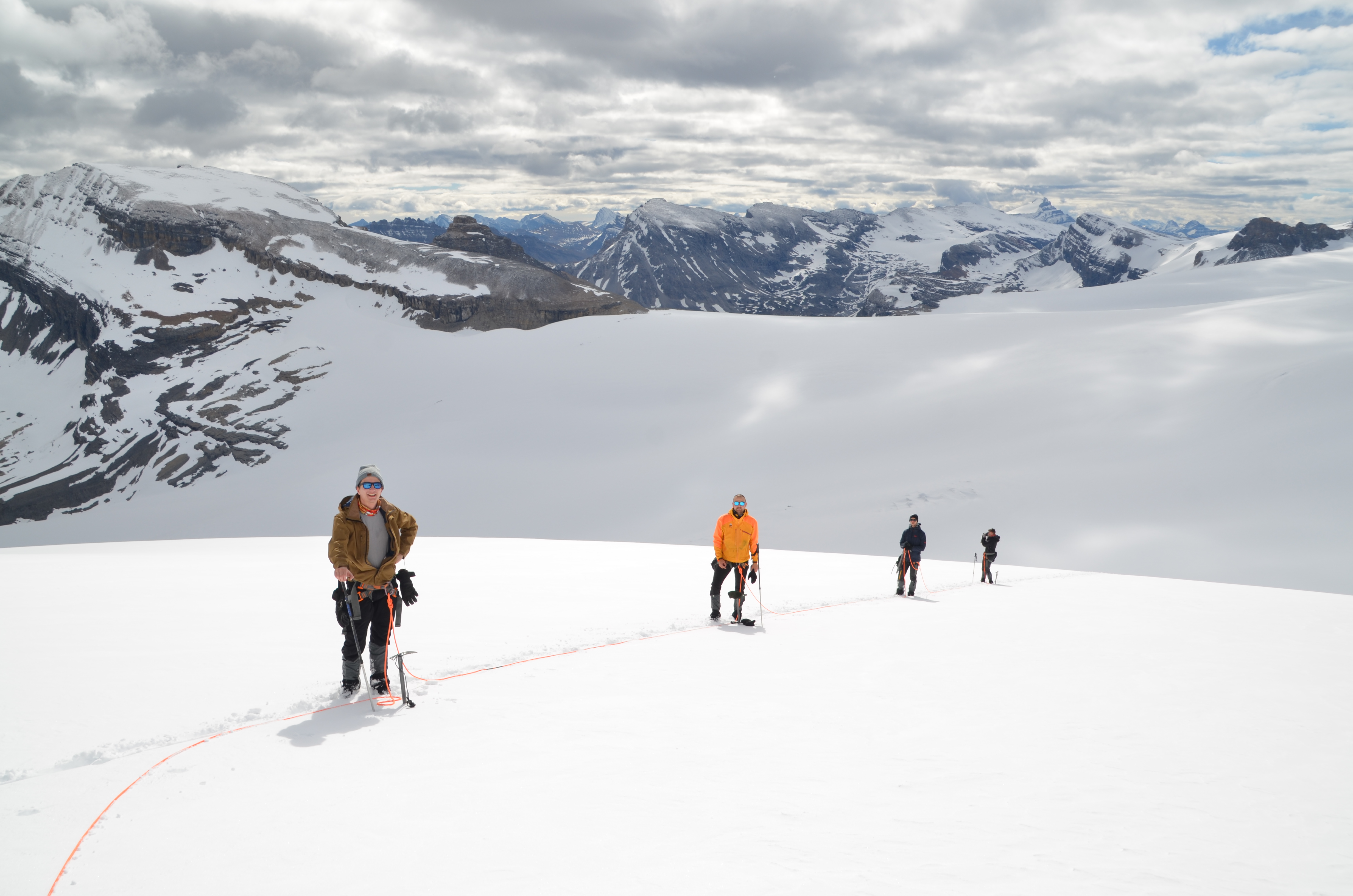 The weather was relatively cold and largely cloudy with frequent snow showers and low visibility on the glaciers, except for Monday, when we woke up at the Peyto Hut to mainly sunny skies, which lasted until early afternoon when showers kicked in again.