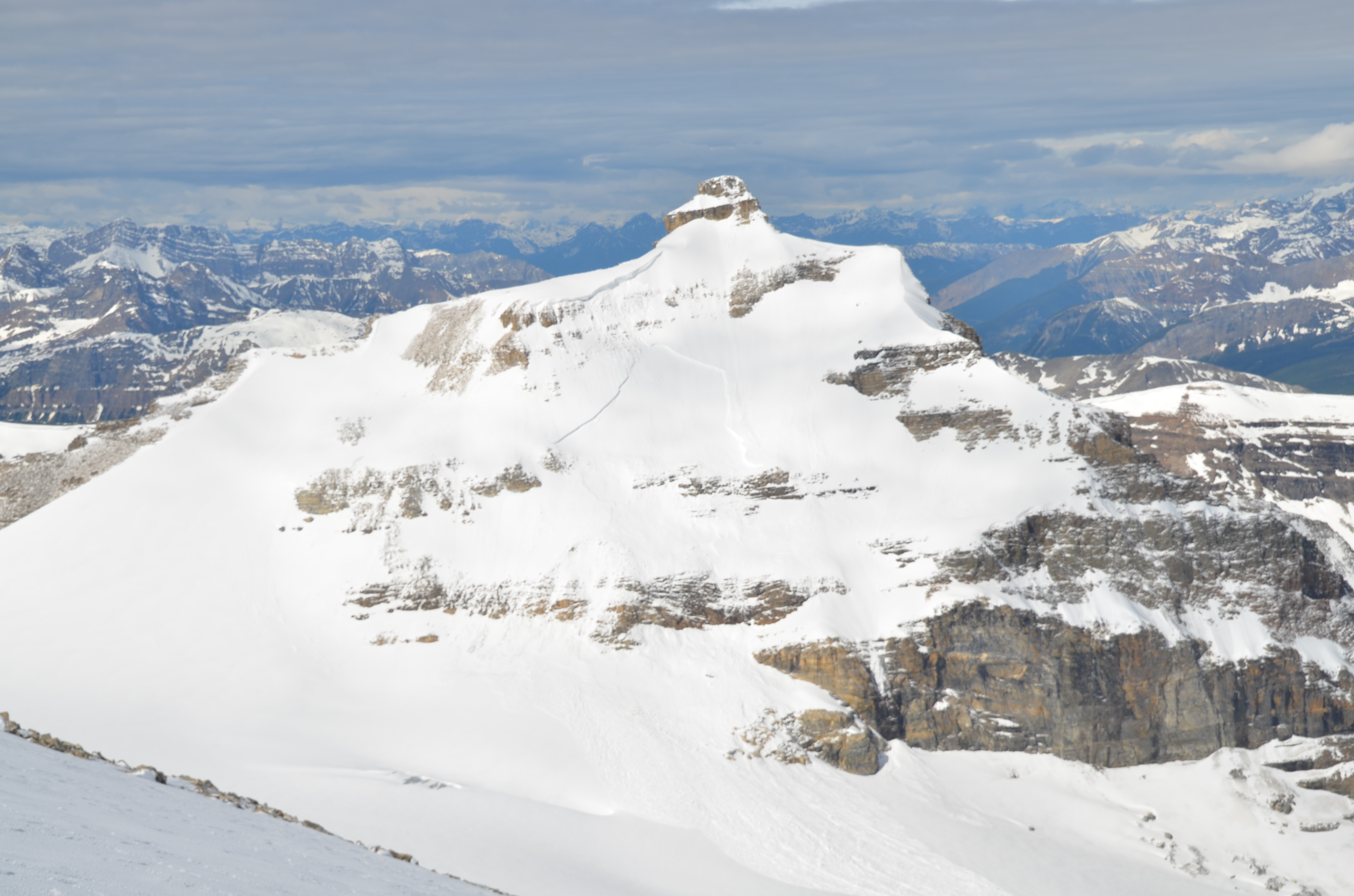 We found up to 20 cm (average more around 10 cm) new snow on a rain or temperature crust, which carried mostly and made travel quite pleasant on the glaciers. The snow coverage is a reflection of our warm winter with high freezing levels. There is practically no snow left on the hut approaches but coverage is good on the glaciers. On the Bow Glacier, the snow pack is deeper than the 2 meter probe I carried and probed very dense with several hard crusts embedded. Coverage on the Peyto Glacier was less with 180 - 160 cm, the lower 500 meter of the glacier tongue is bare.