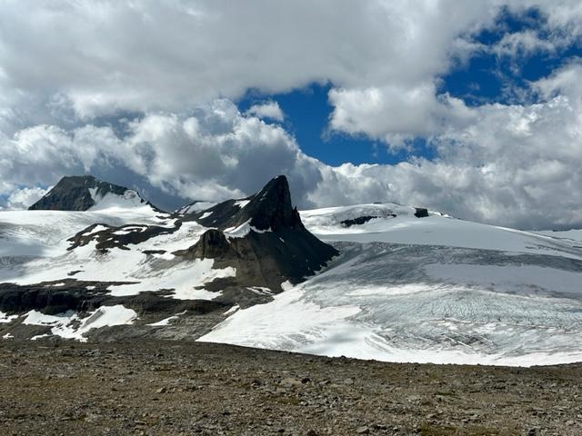 Came out from a 3 day "Little Wapta Traverse" Bow Lake - Bow Hut - Peyto Hut - Peyto Lake yesterday. Given the low residual snowpack from last winter on the glaciers and an unusually warm and dry June, about 40-50% of the glaciers on the Wapta Icefields have lost their snow coverage already. The remaining snow is fairly "young", largely the result of a more recent cold front and water saturated, which created cumbersome and "swampy" travel conditions for us between the Onion and the Thompson Rhonda Col on day 2.