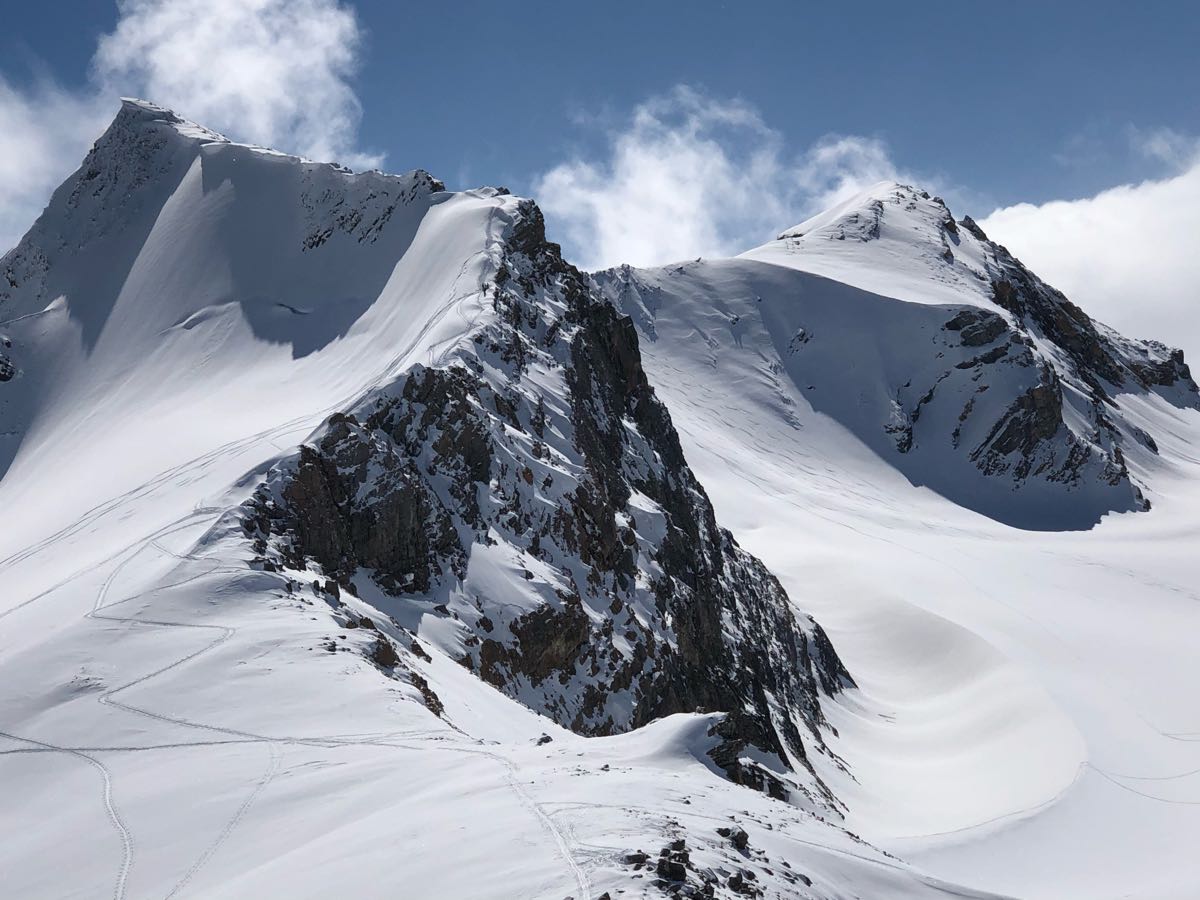 With two very fit guests, we climbed Mt. Olive and then St. Nick today in a day trip from the road. Up to 20 cm of new snow and cool temps provided very good ski quality on alpine and treeline north aspects. 240+ cm on the lower Bow glacier.